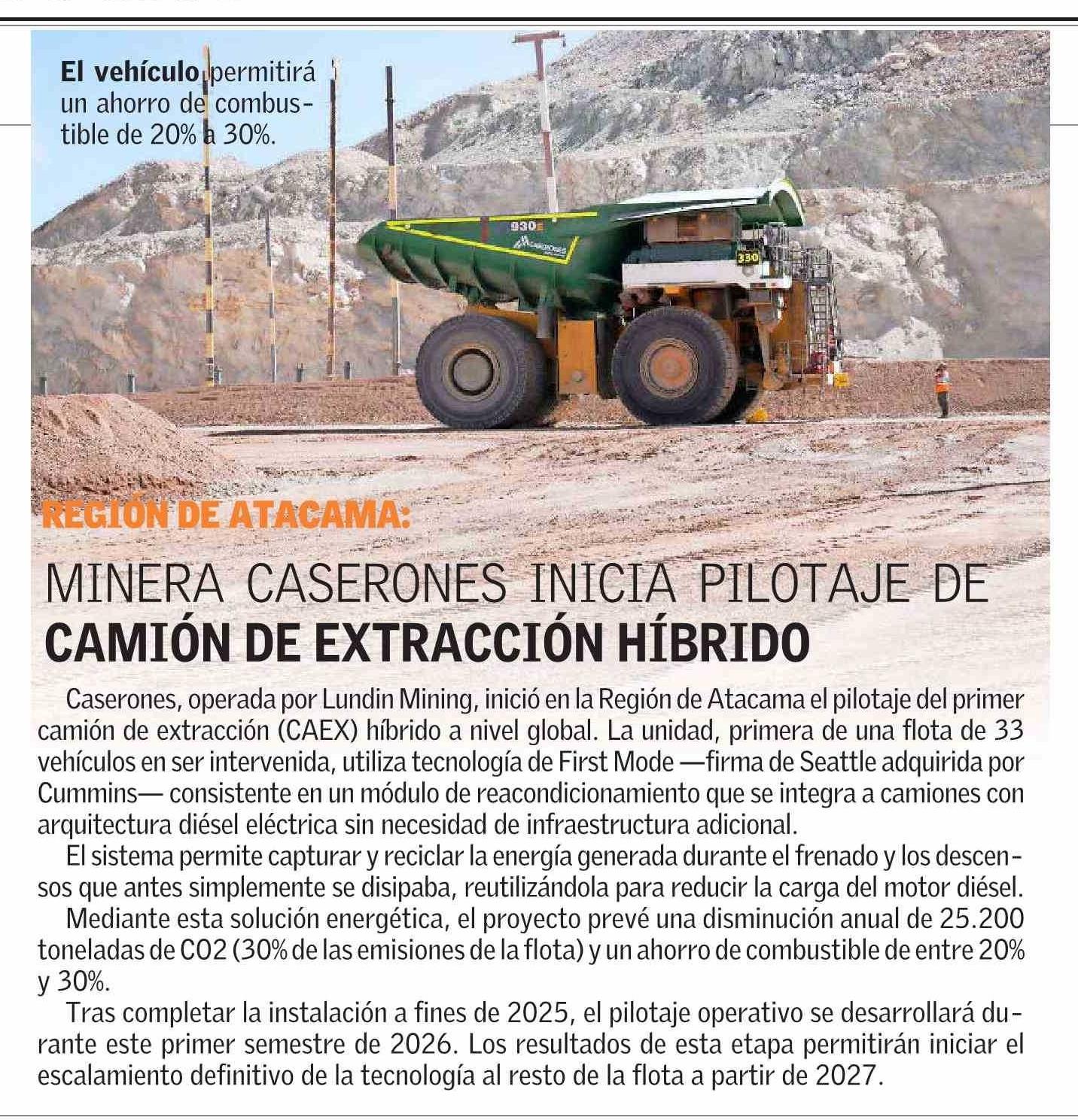 MINERA CASERONES INICIA PILOTAJE DE CAMIÓN DE EXTRACCIÓN HÍBRIDO