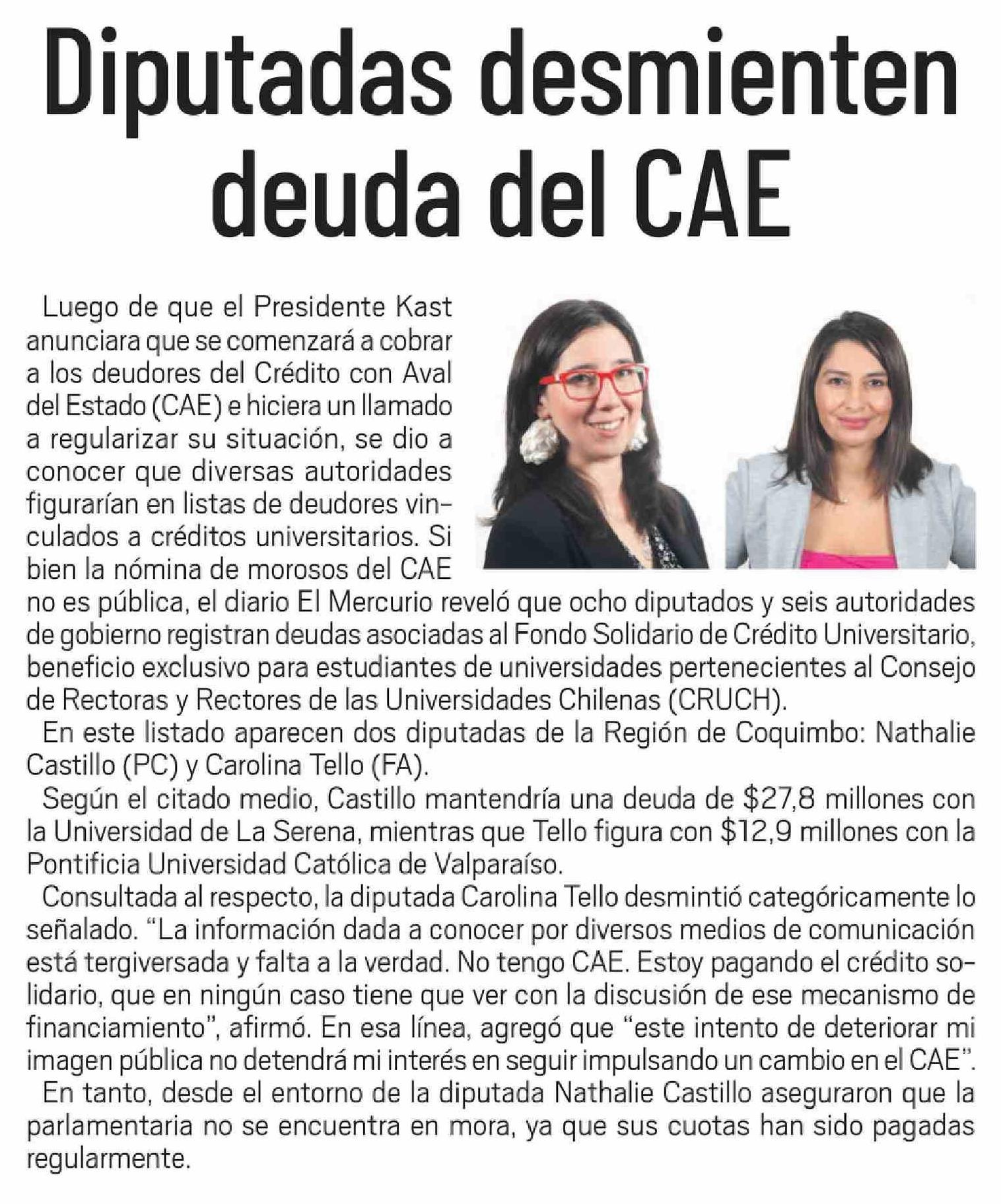 Diputadas desmienten deuda del CAE