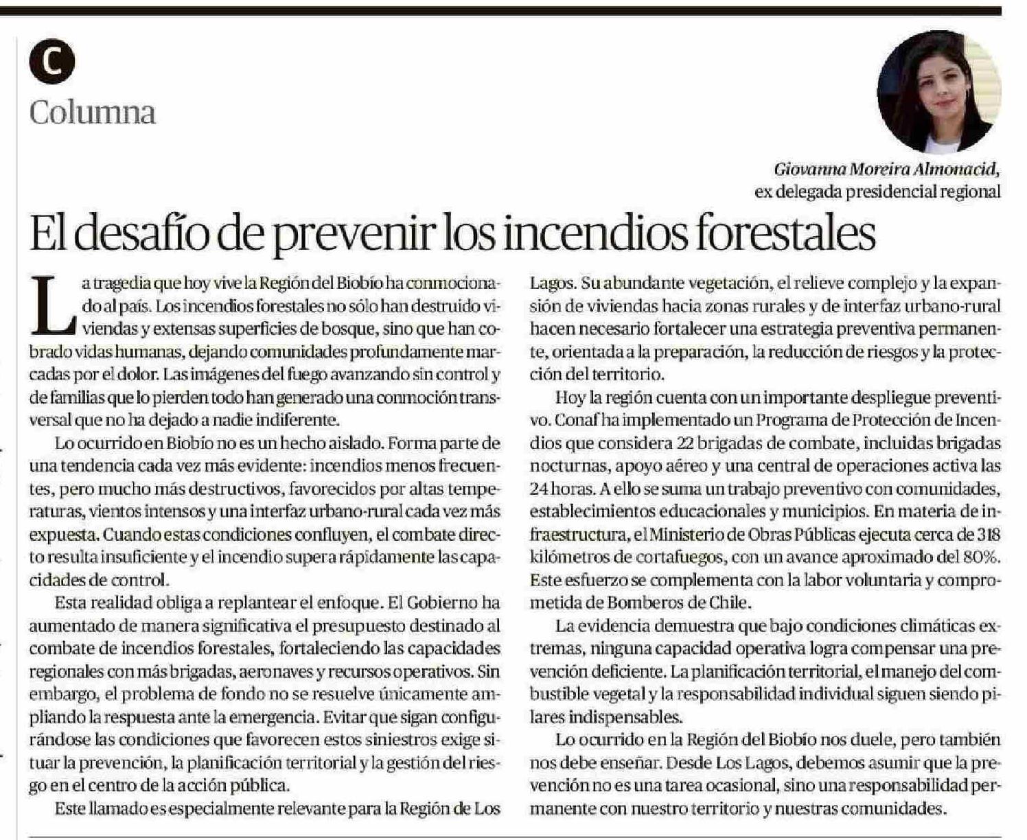Columnas de Opinión: El desafío de prevenir los incendios forestales