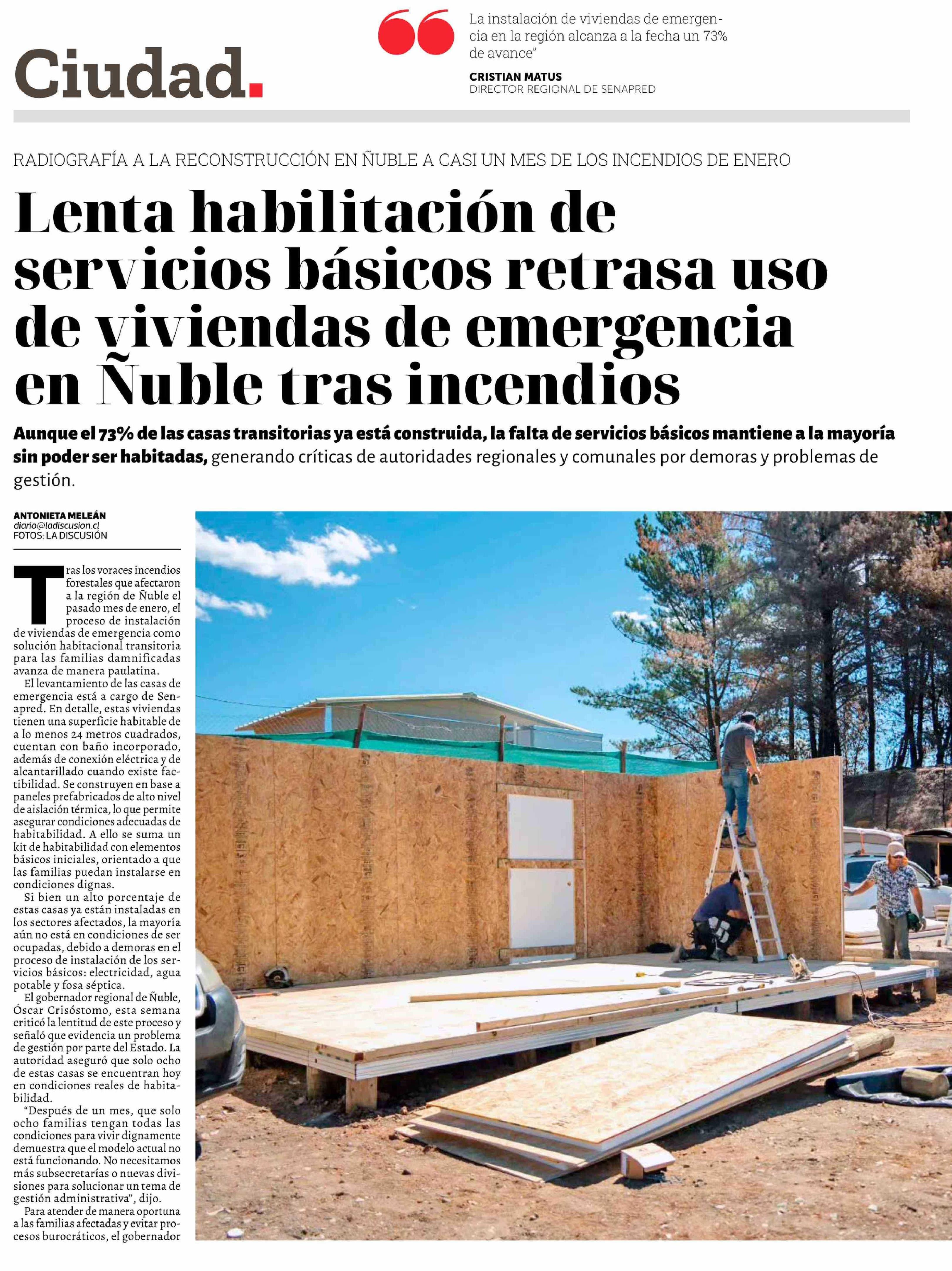 Lenta habilitación de servicios básicos retrasa uso de viviendas de emergencia en Ñuble tras incendios