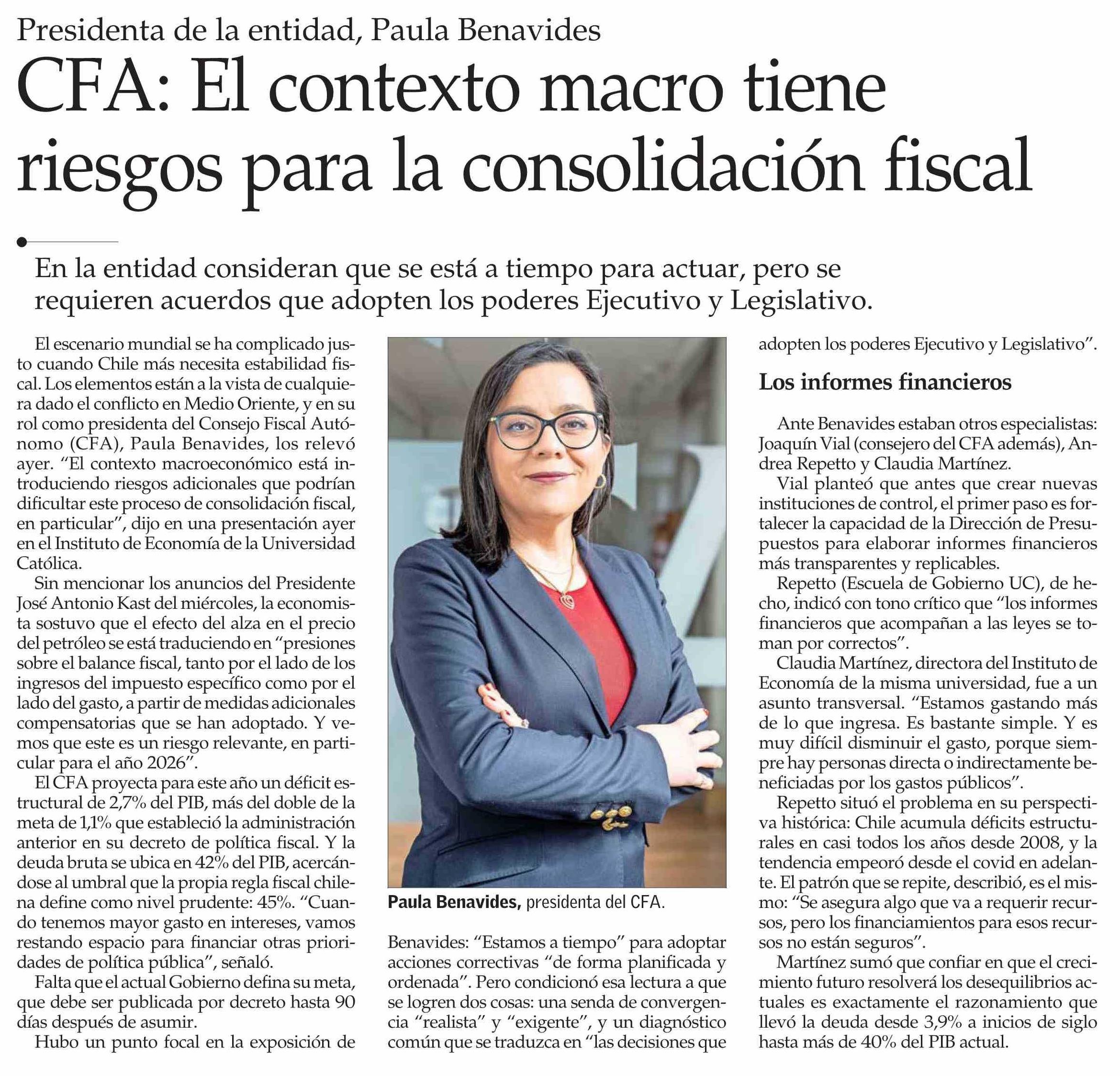 CFA: El contexto macro tiene riesgos para la consolidación fiscal