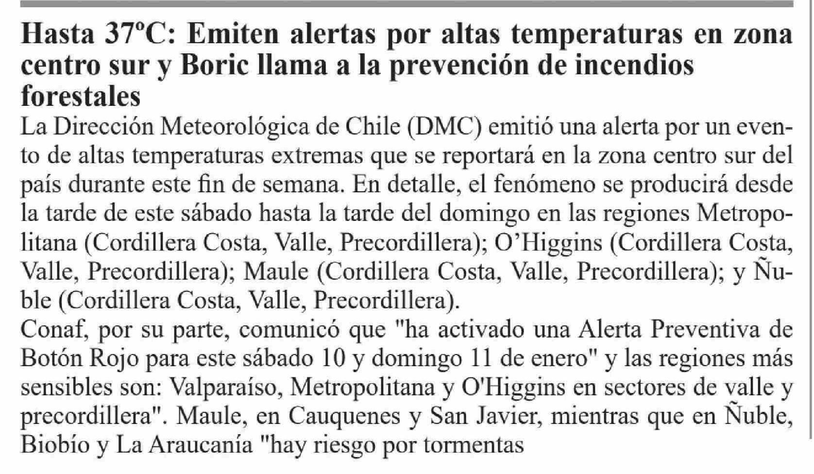 Hasta 37°C: Emiten alertas por altas temperaturas en zona centro sur y Boric llama a la prevención de incendios forestales