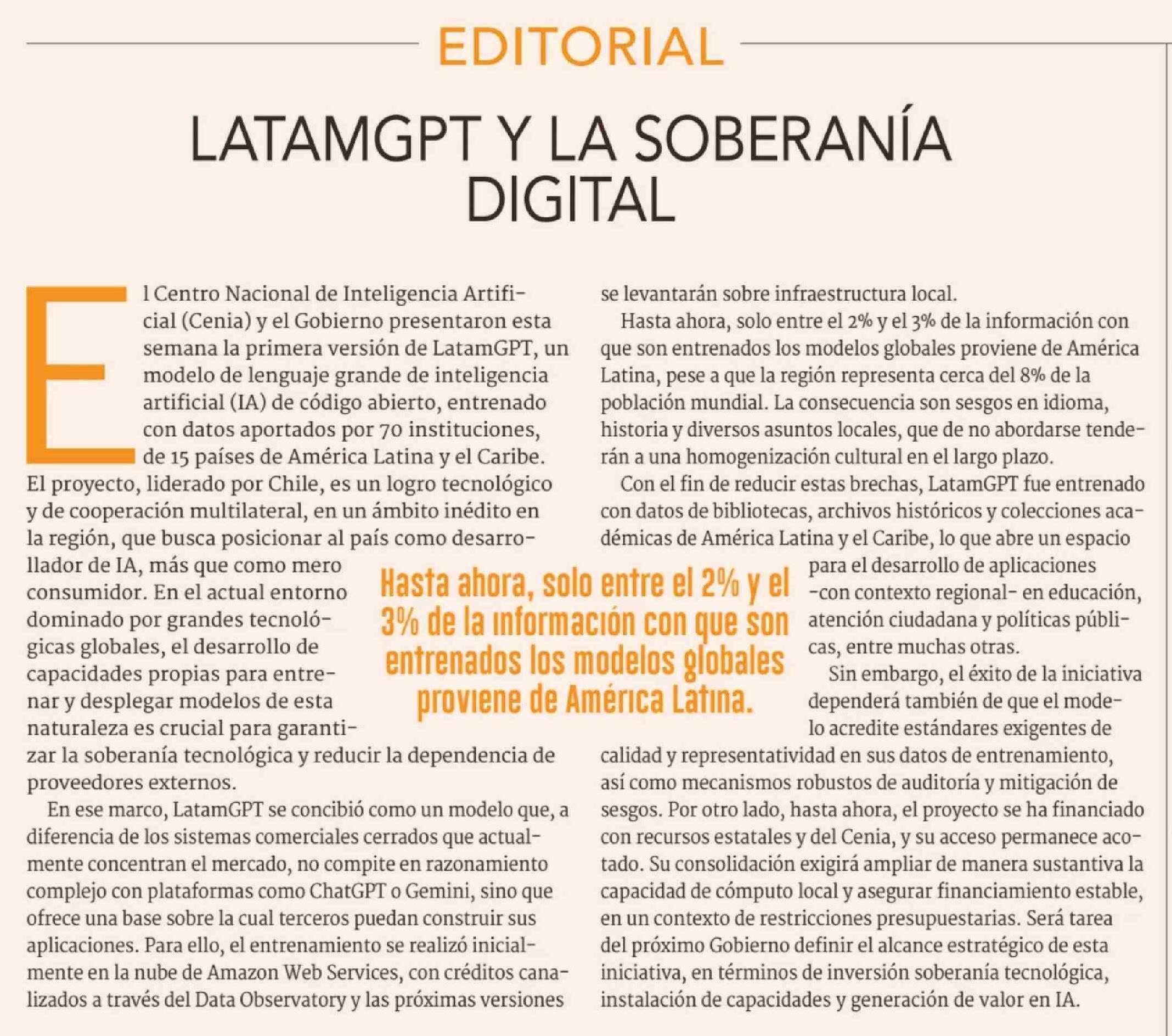 Editorial: LATAMGPT Y LA SOBERANÍA DIGITAL