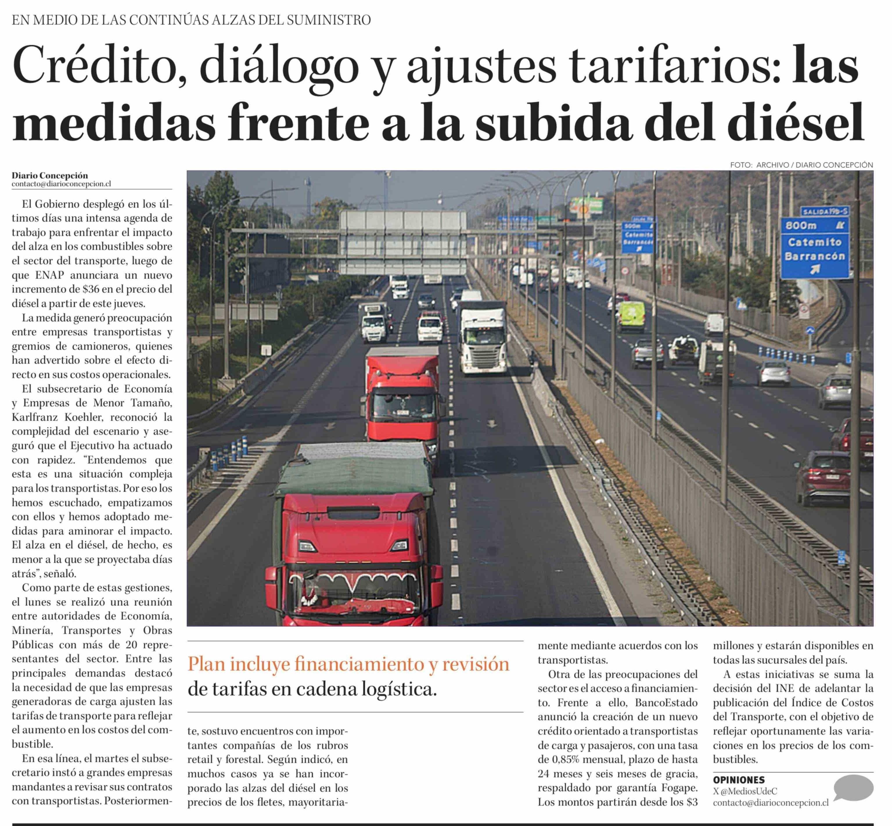 Crédito, diálogo y ajustes tarifarios: las medidas frente a la subida del diésel