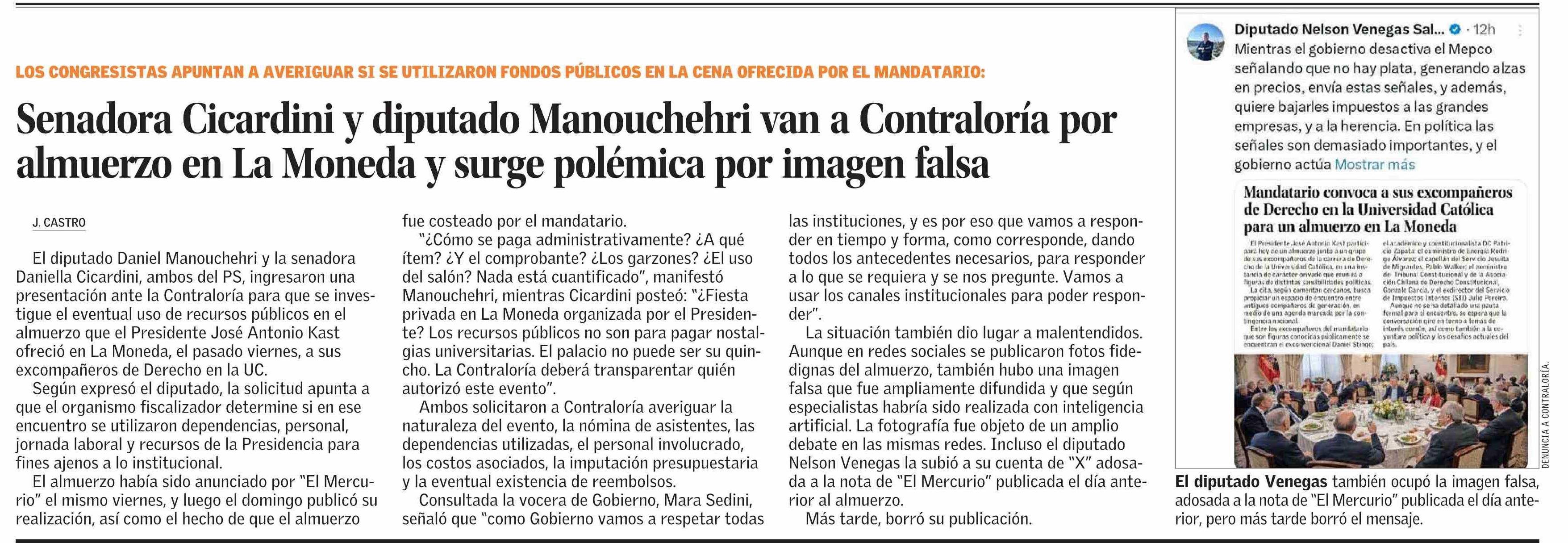 Senadora Cicardini y diputado Manouchehri van a Contraloría por almuerzo en La Moneda y surge polémica por imagen falsa