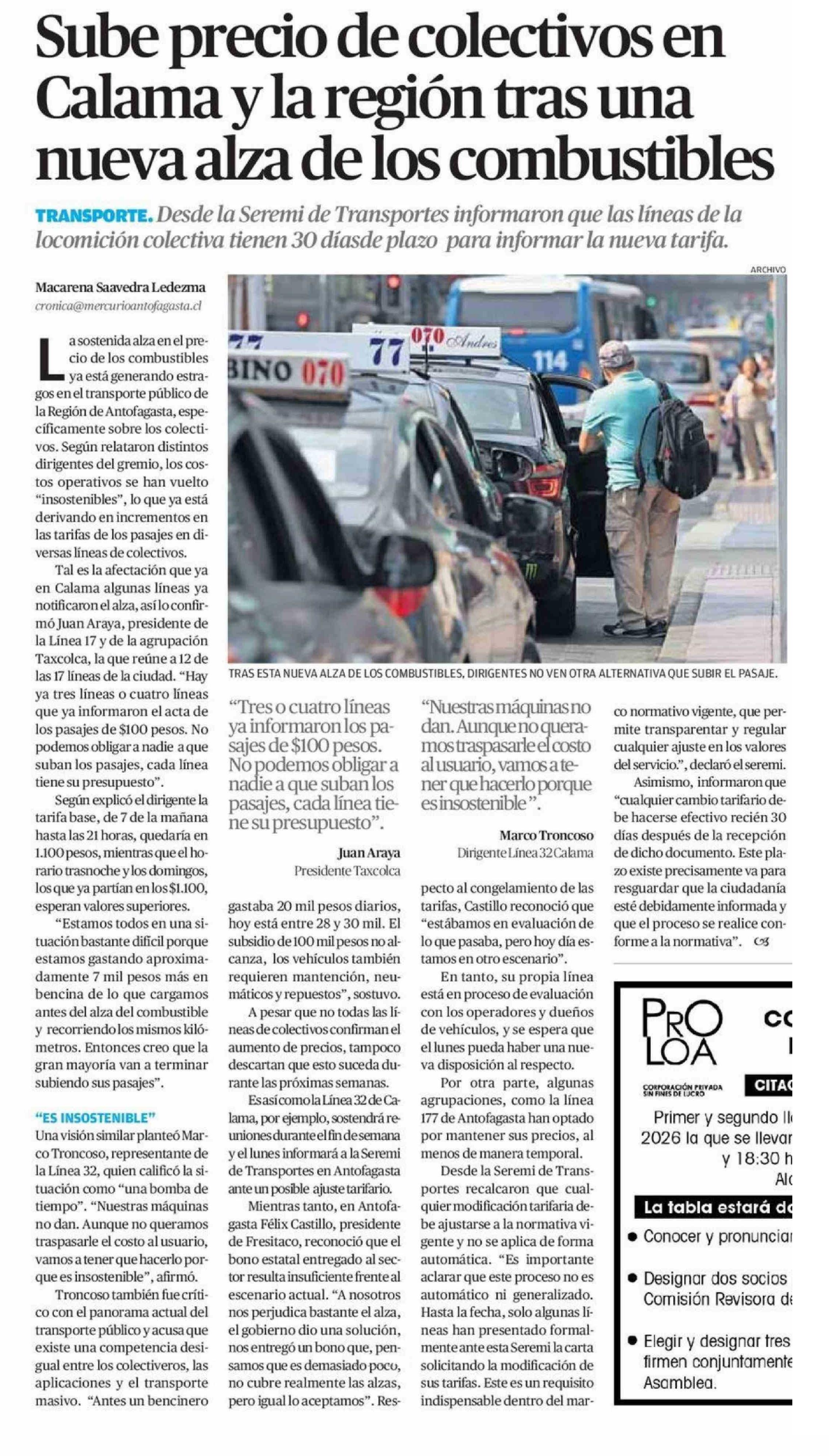 Sube precio de colectivos en Calama y la región tras una nueva alza de los combustibles