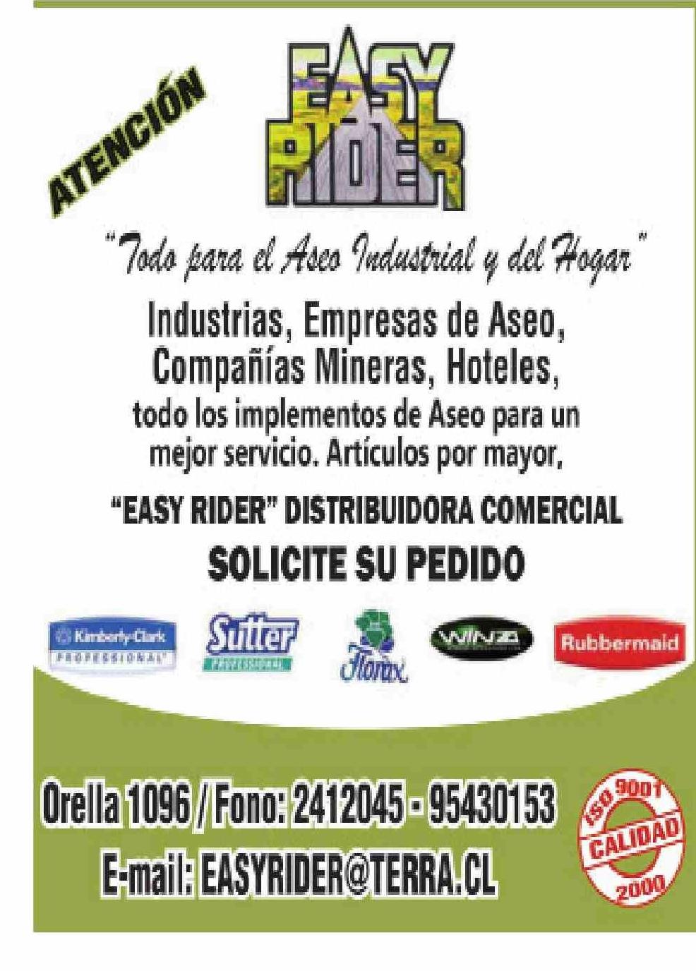 AVISO PUBLICITARIO: Industrias, Empresas de Aseo, Compañías Mineras, Hoteles, SU PEDIDO EASYRIDE?!TERaA!CL