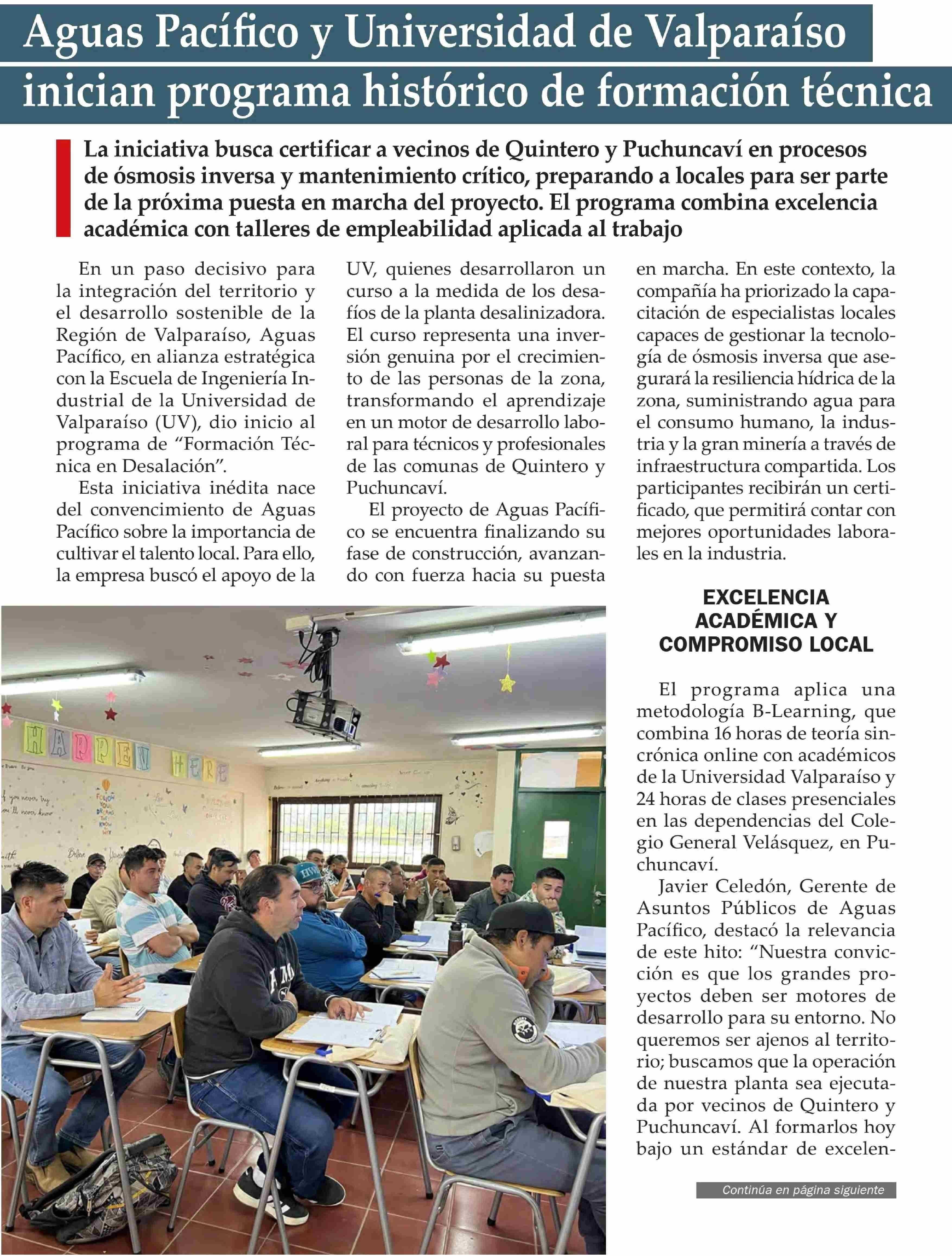 Aguas Pacífico y Universidad de Valparaíso inician programa histórico de formación técnica