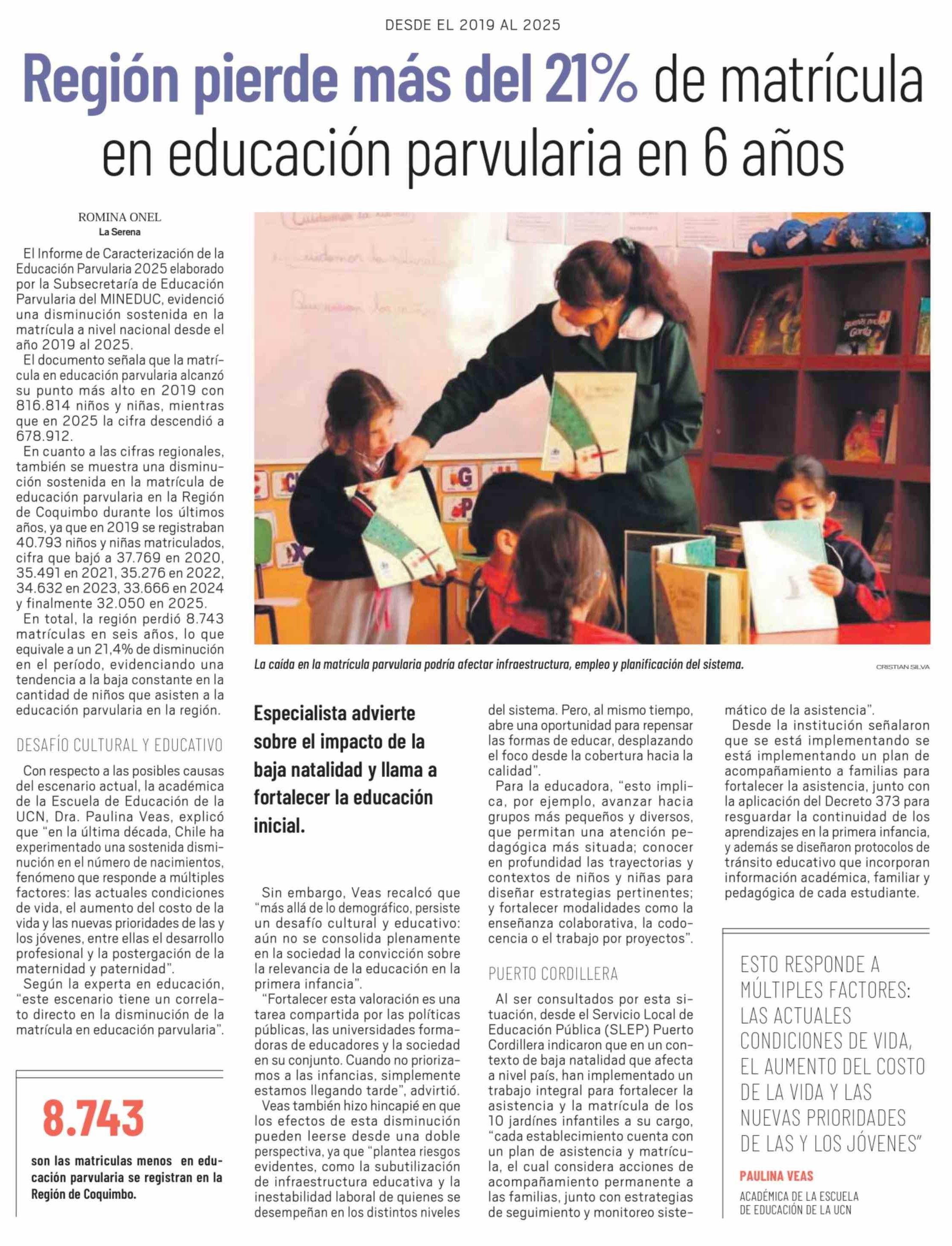 Región pierde más del 21% de matrícula en educación parvularia en 6 años