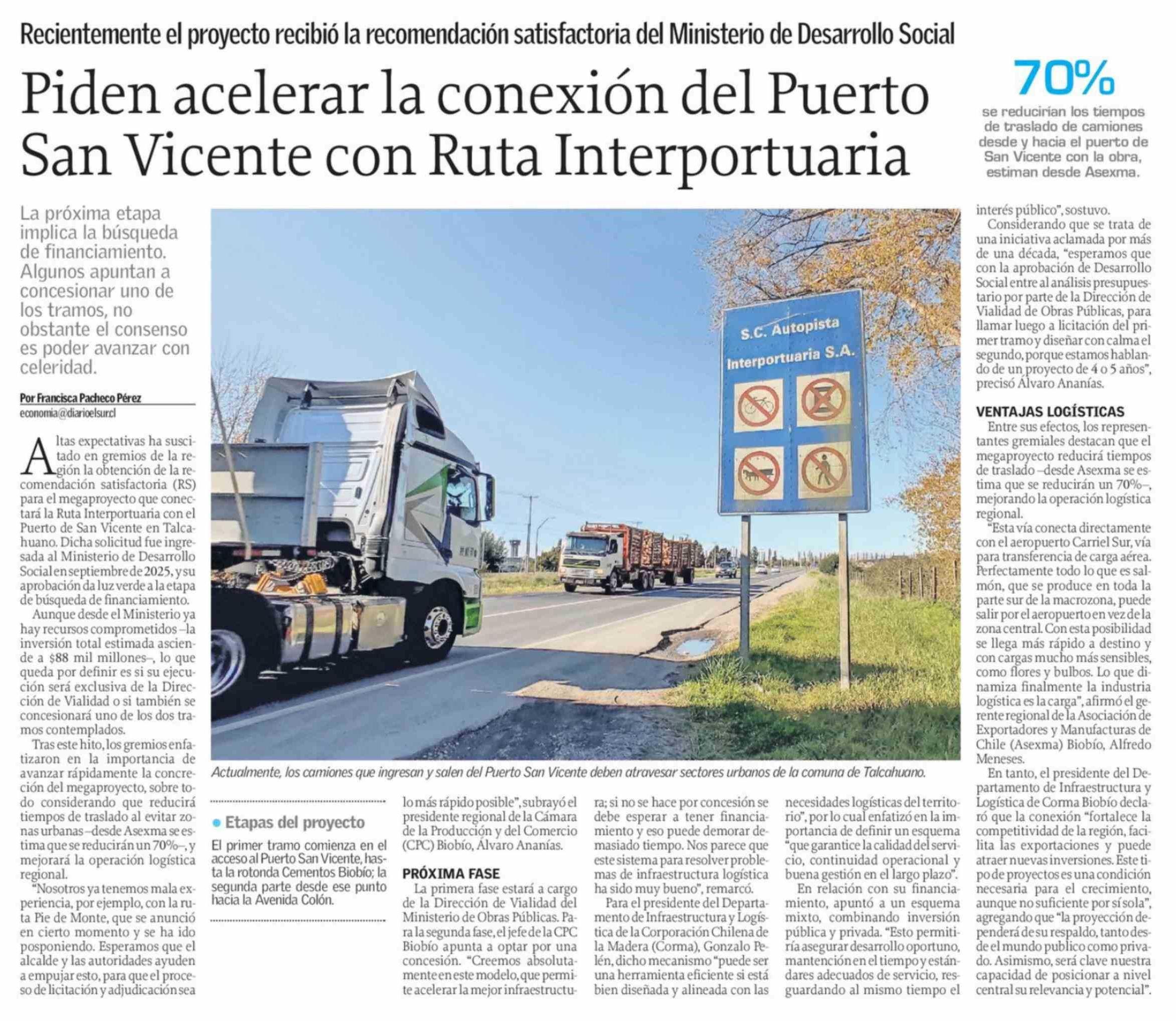 Piden acelerar la conexión del Puerto San Vicente con Ruta Interportuaria