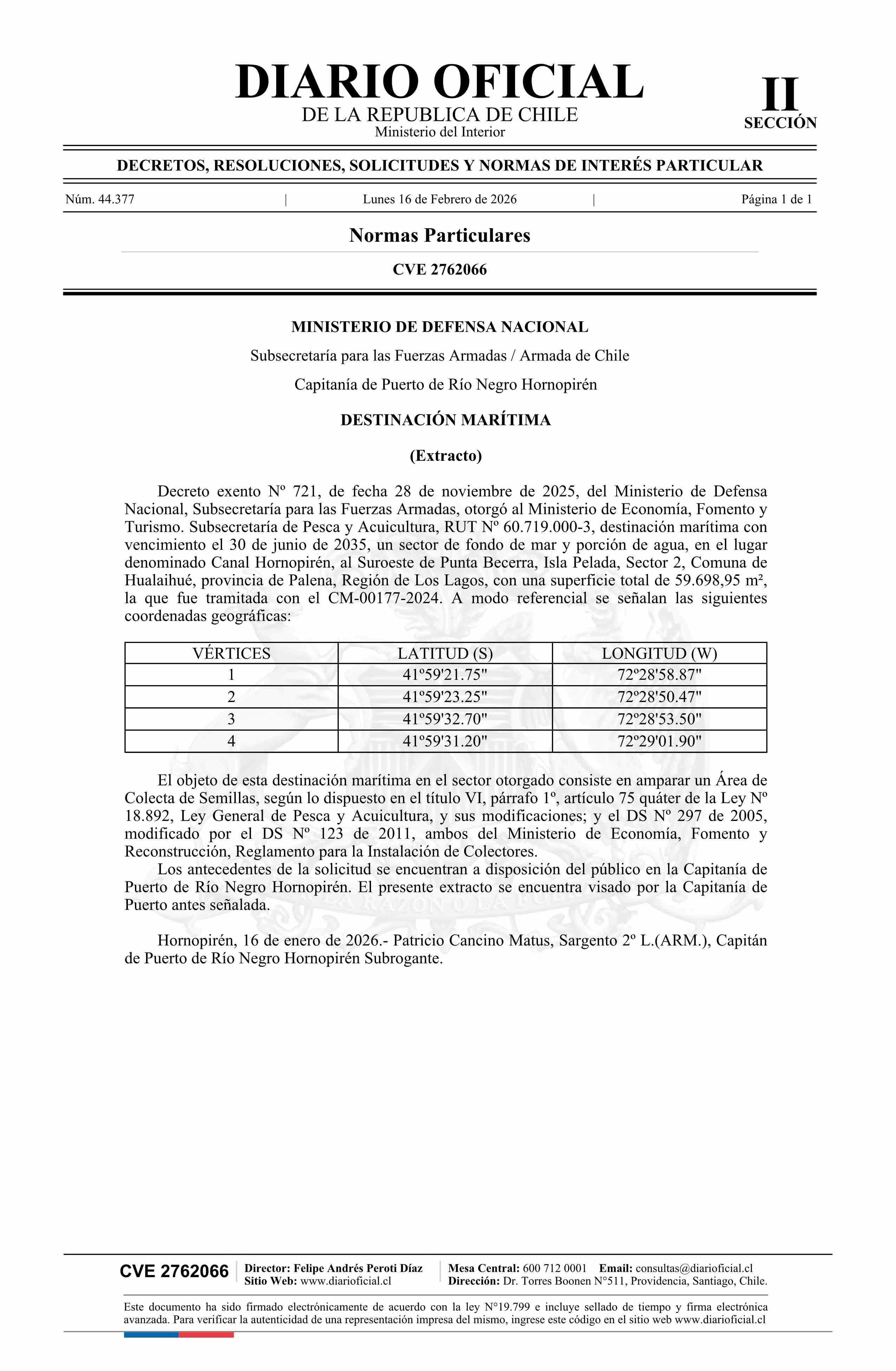 Extracto de decreto exento número 721, de 2025.- Destinación marítima