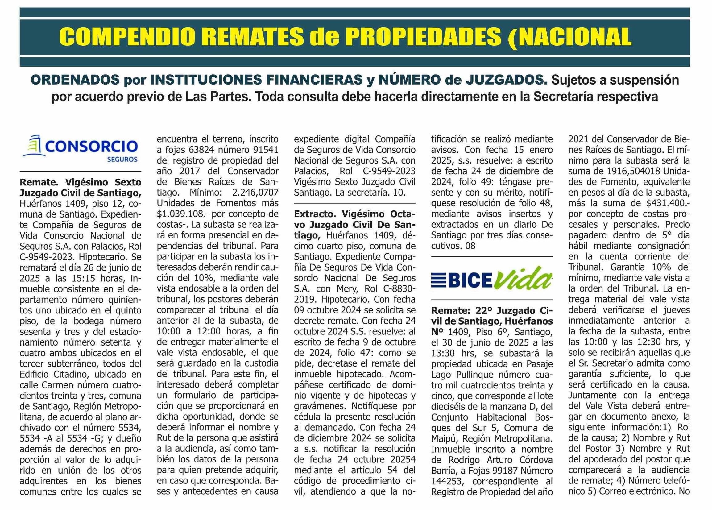 REMATES: COMPENDIO REMATES de PROPIEDADES (NACIONAL
