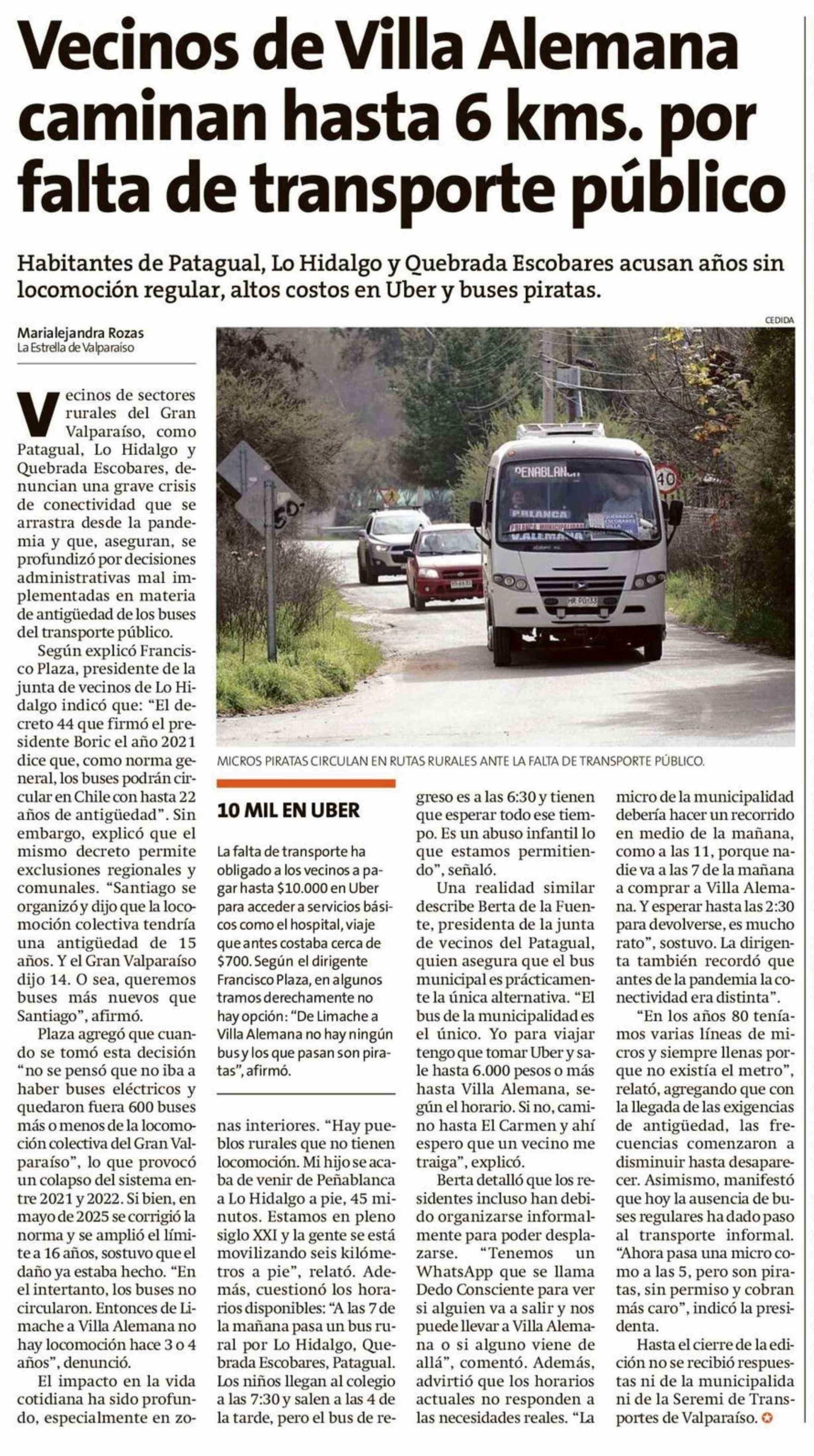 Vecinos de Villa Alemana caminan hasta 6 kms. por falta de transporte público