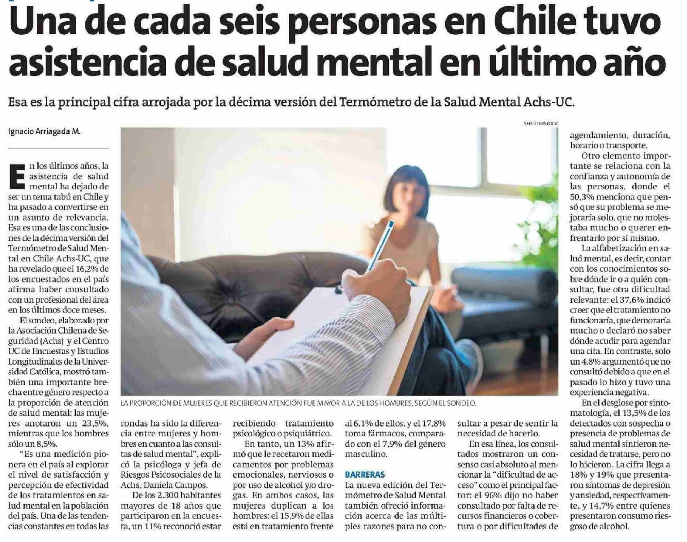 Una de cada seis personas en Chile tuvo asistencia de salud mental en último año
