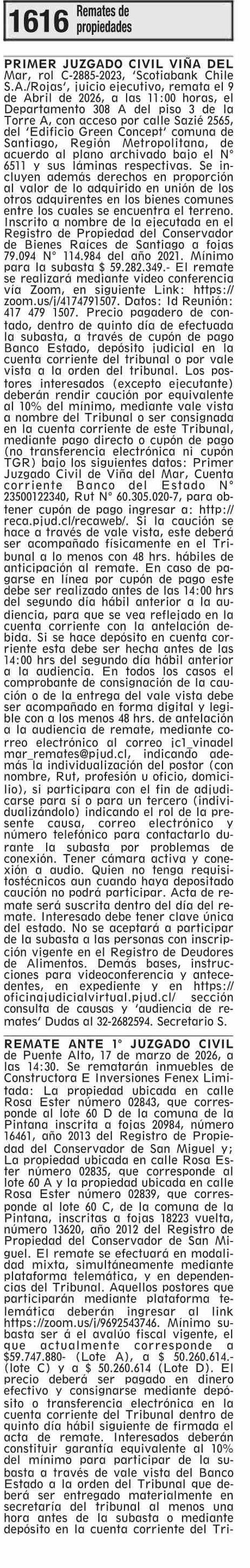 REMATES: 1616 Remates de propiedades