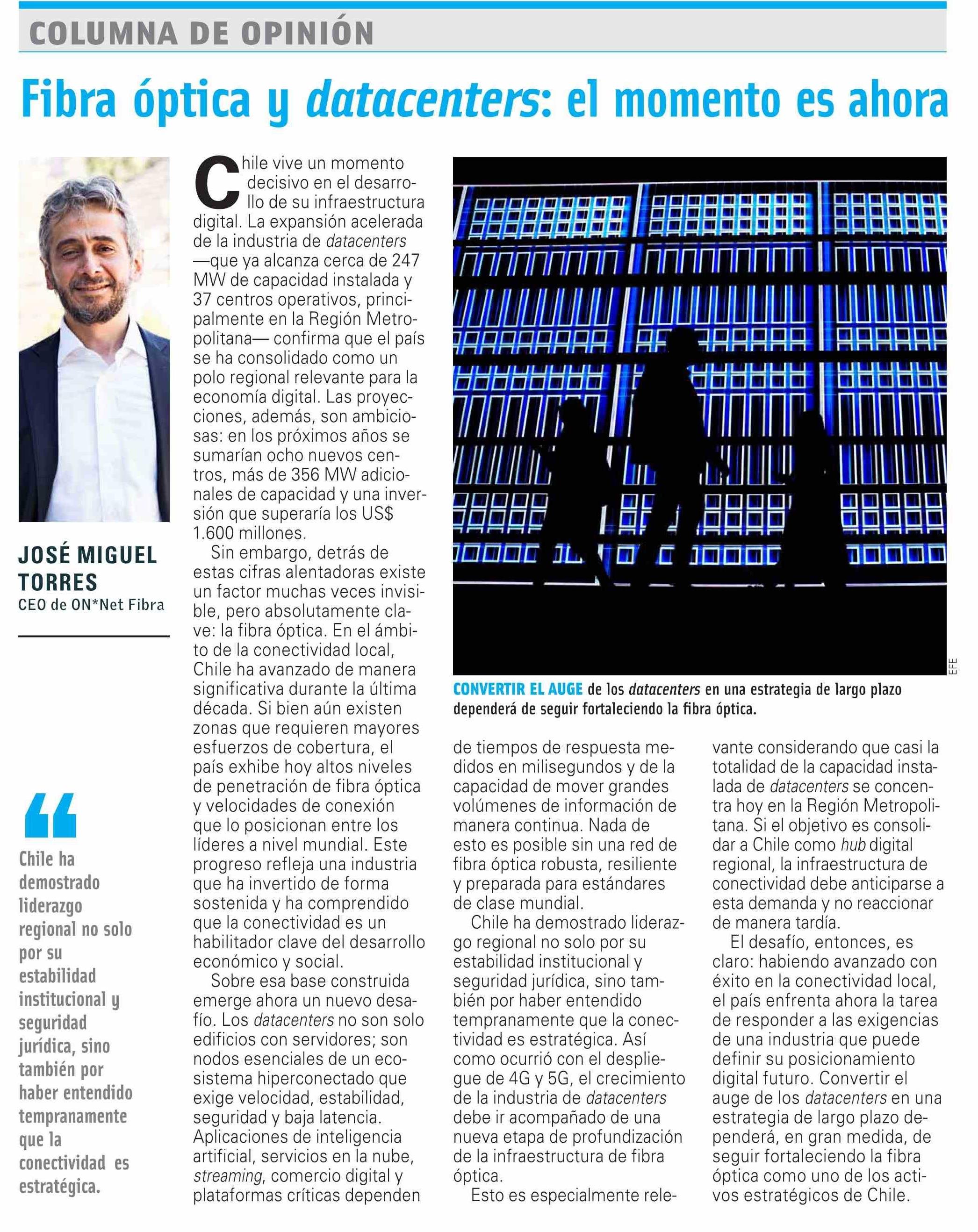 Columnas de Opinión: Fibra óptica y datacenters: el momento es ahora