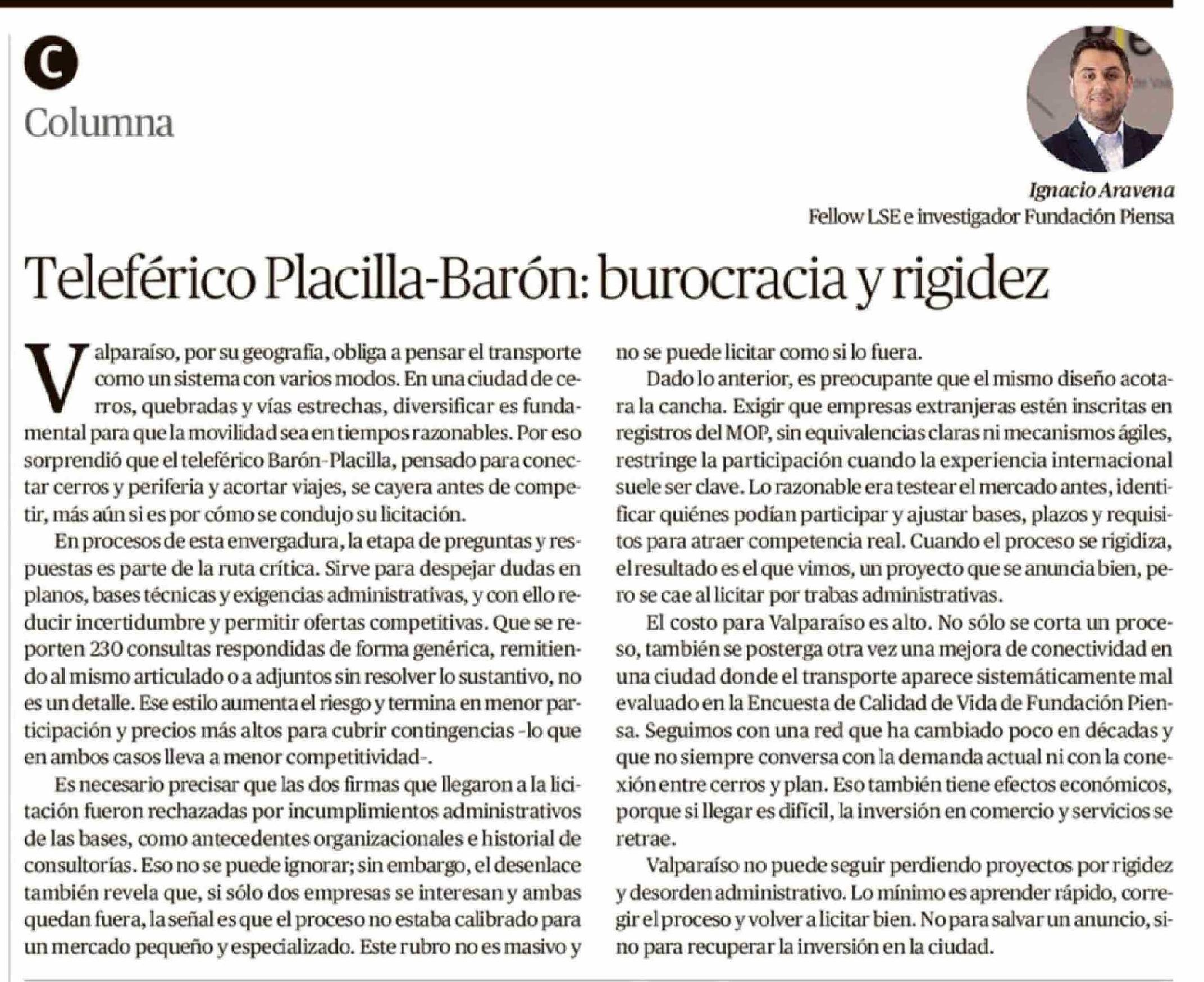 Columnas de Opinión: Teleférico Placilla-Barón: burocracia y rigidez