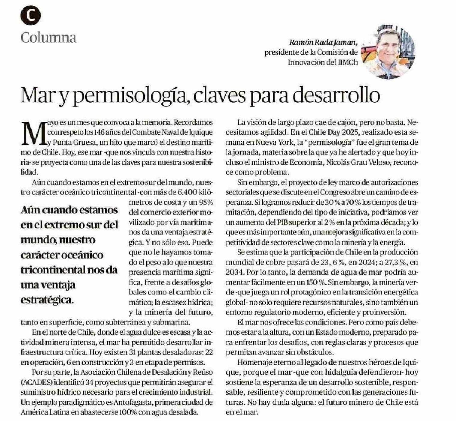 COLUMNAS DE OPINIÓN: Mar y permisología, claves para desarrollo