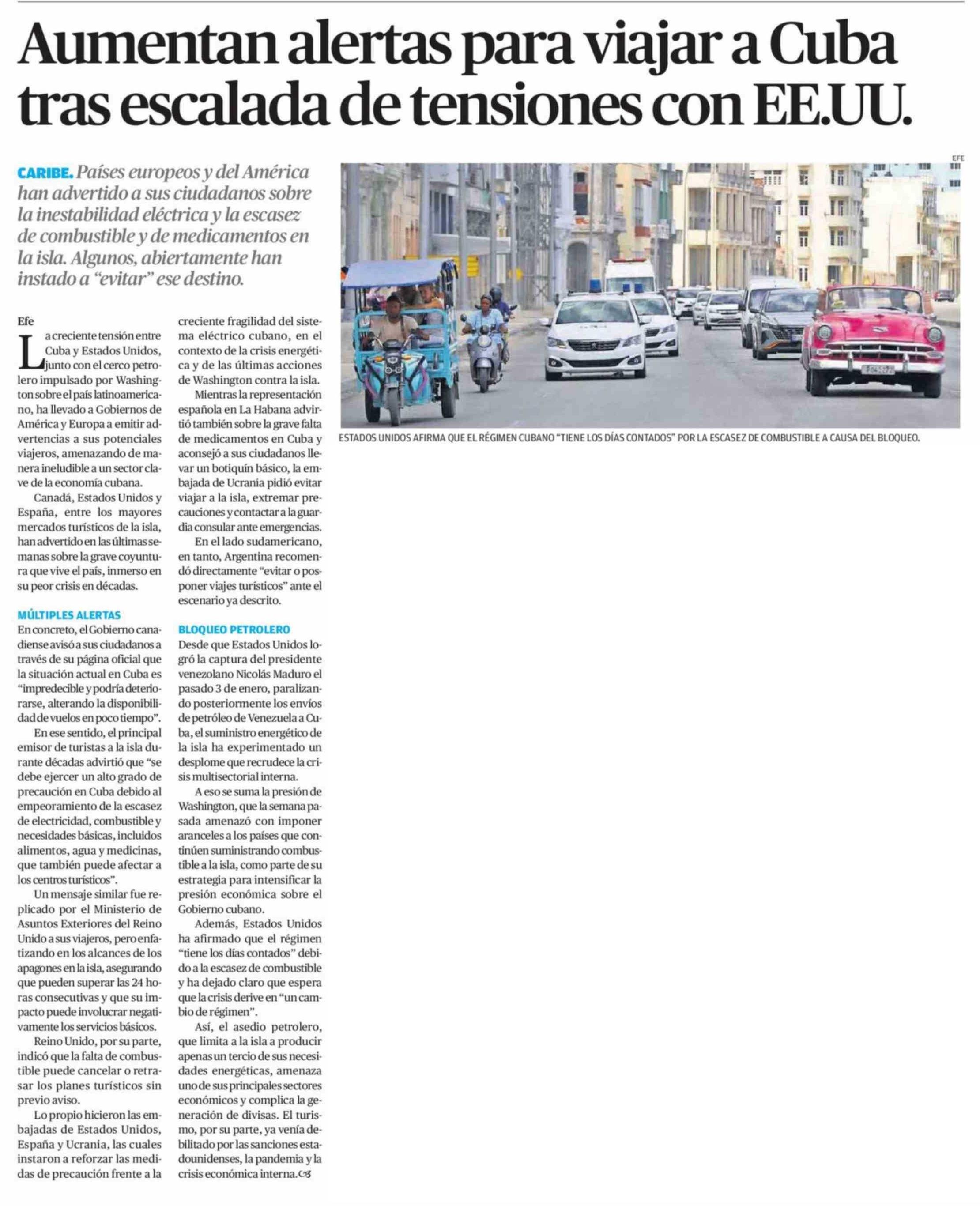 Aumentan alertas para viajar a Cuba tras escalada de tensiones con EE.UU.