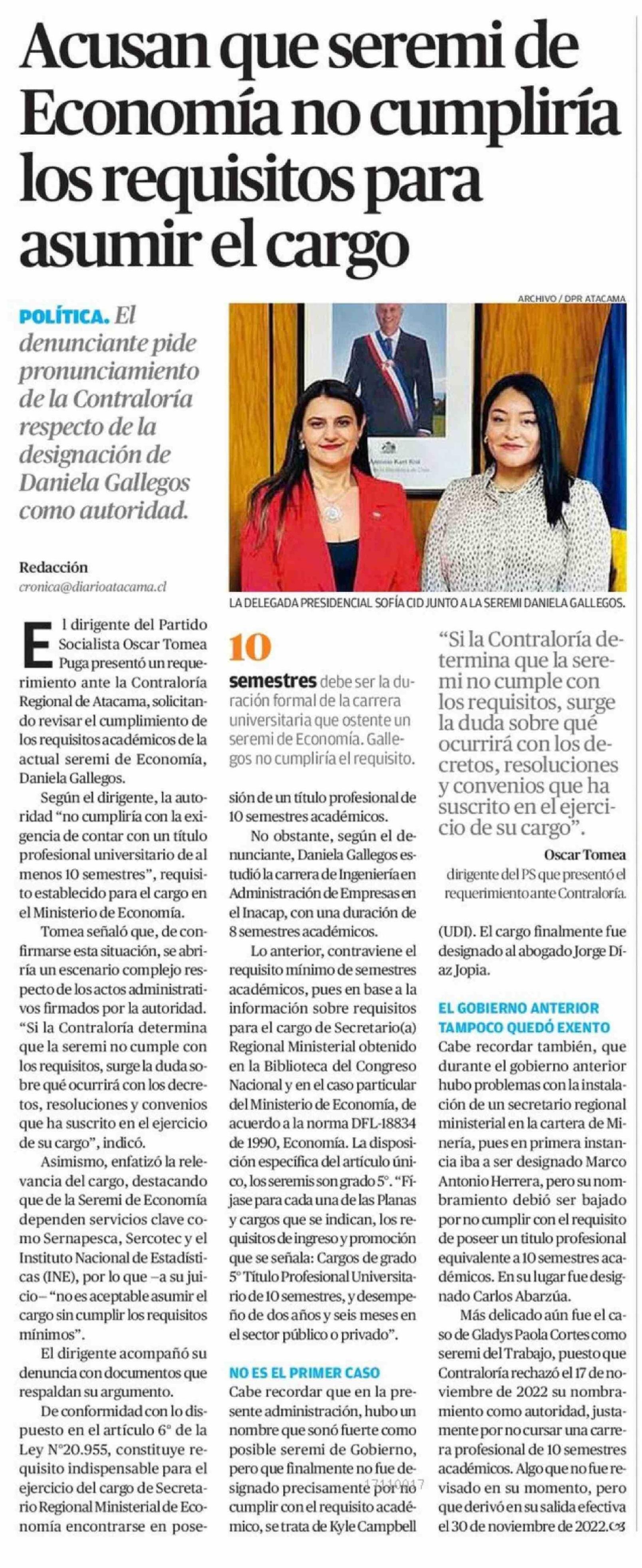 Acusan que seremi de Economía no cumpliría los requisitos para asumir el cargo