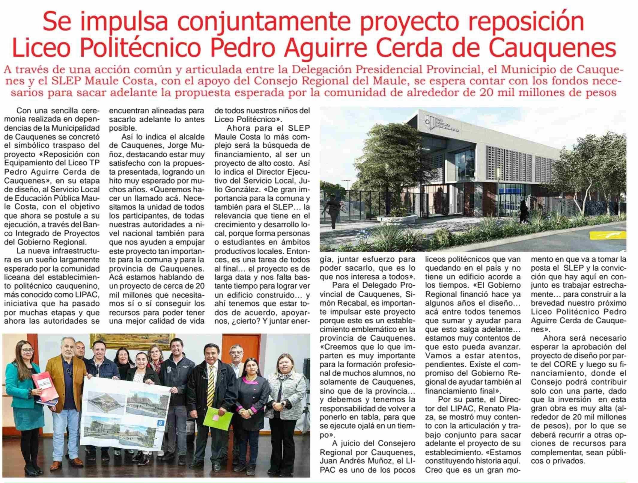 Se impulsa conjuntamente proyecto reposición Liceo Politécnico Pedro Aquirre Cerda de Cauquenes