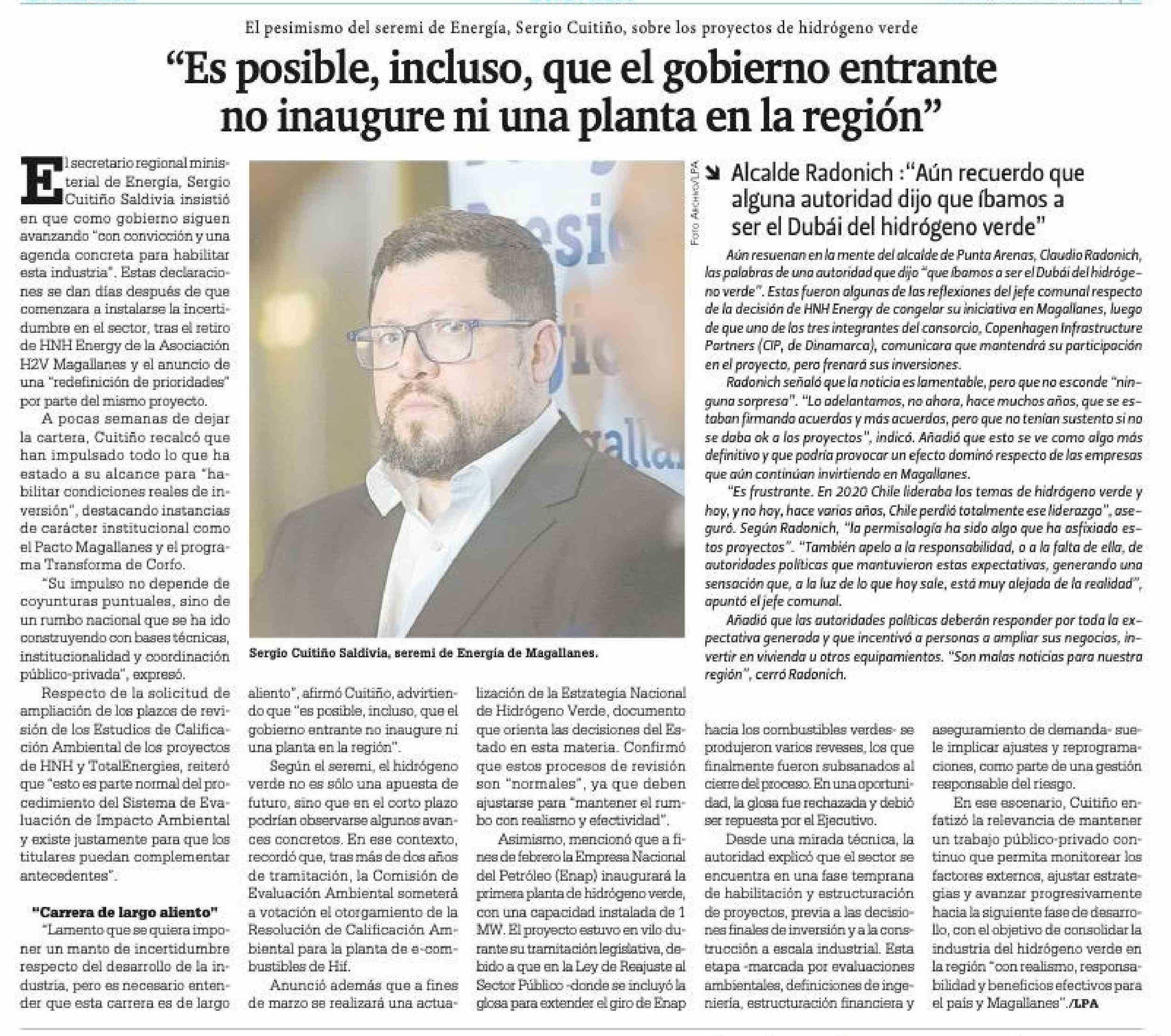 "Es posible, incluso, que el gobierno entrante no inaugure ni una planta en la región"