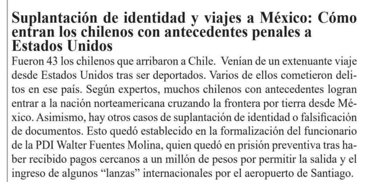 Título: Suplantación de identidad y viajes a México: Cómo entran los chilenos con antecedentes penales a Estados Unidos