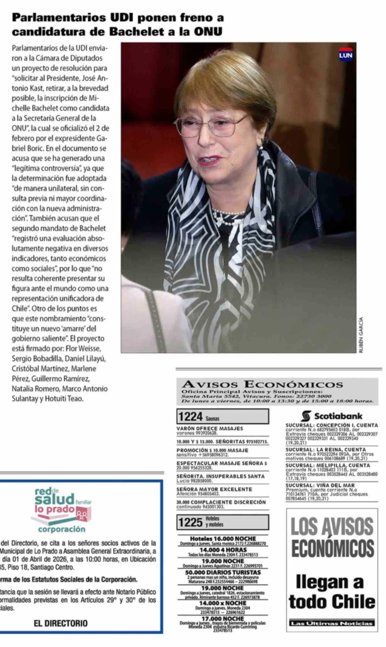 Parlamentarios UDI ponen freno a candidatura de Bachelet a la ONU