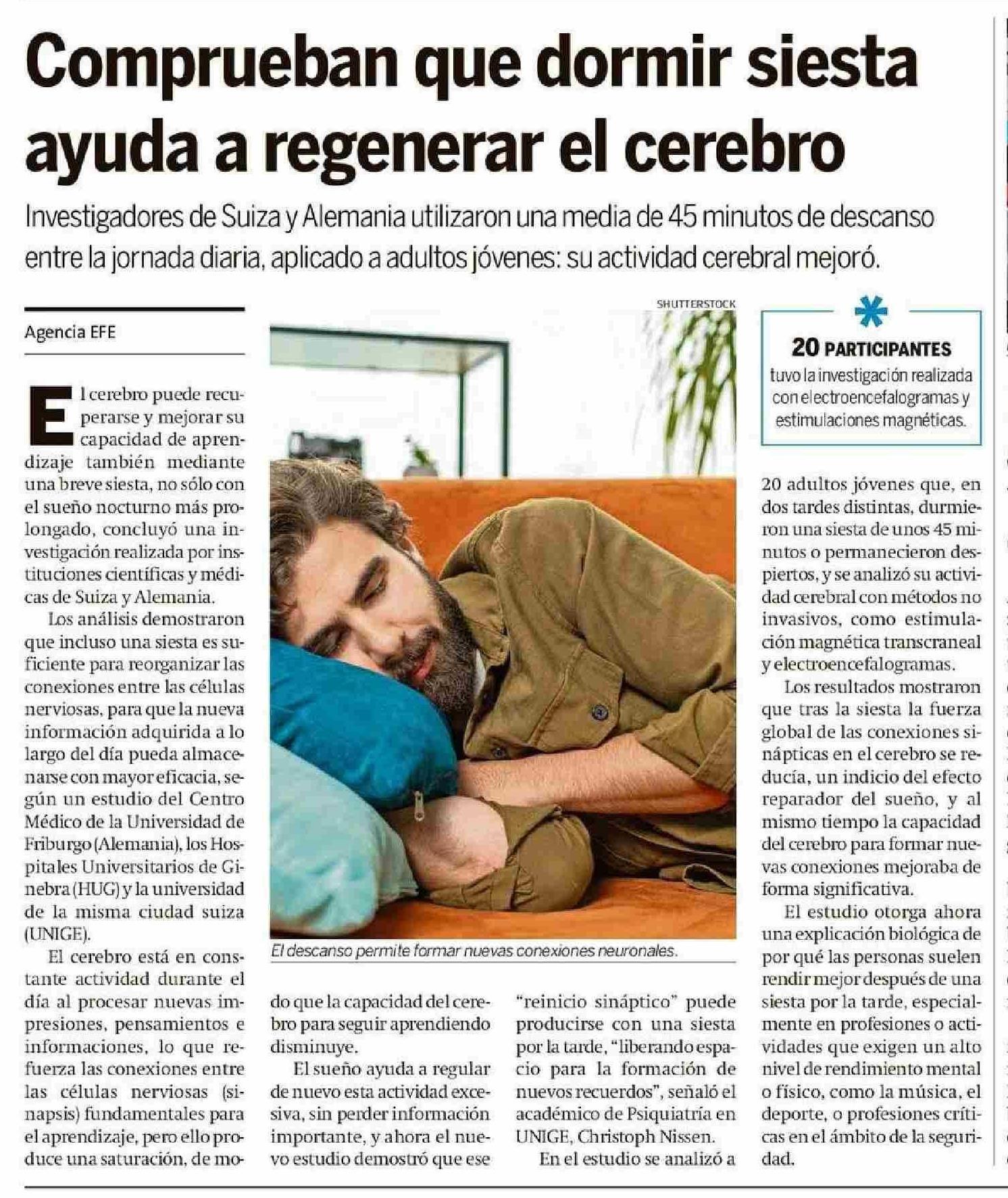 Comprueban que dormir siesta ayuda a regenerar el cerebro