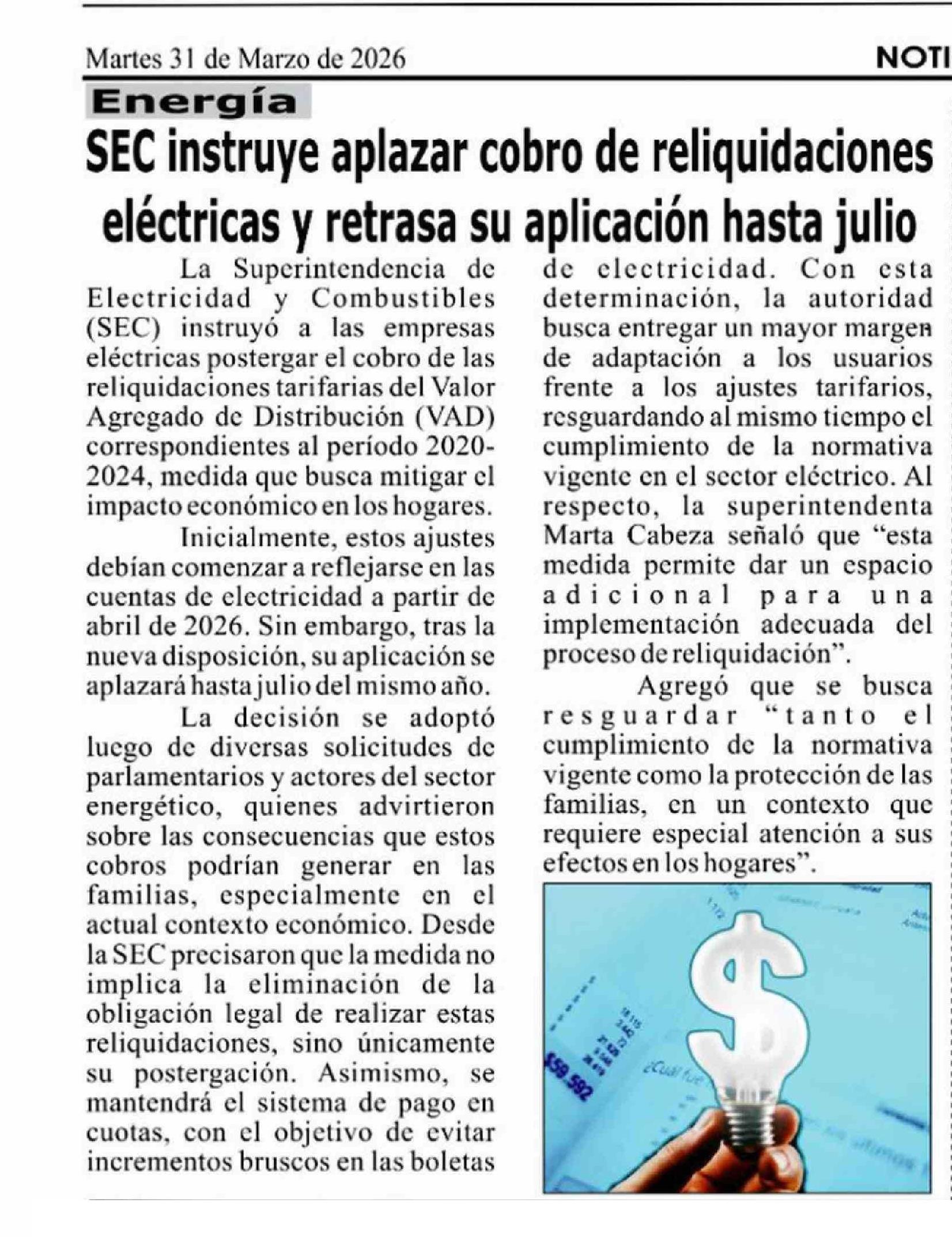 SEC instruye aplazar cobro de reliquidaciones eléctricas y retrasa su aplicación hasta julio