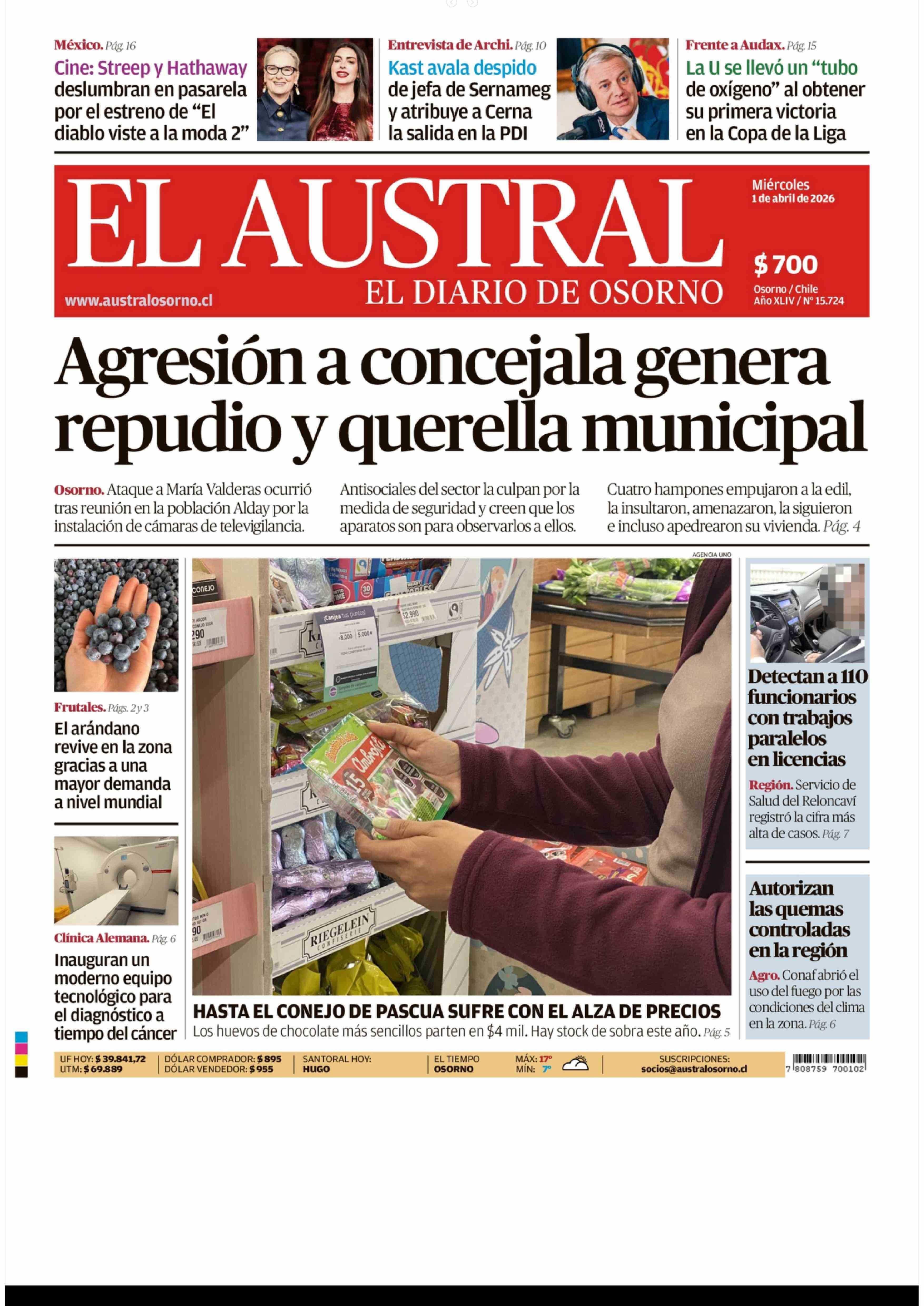 PORTADA EL AUSTRAL DE OSORNO CHILE