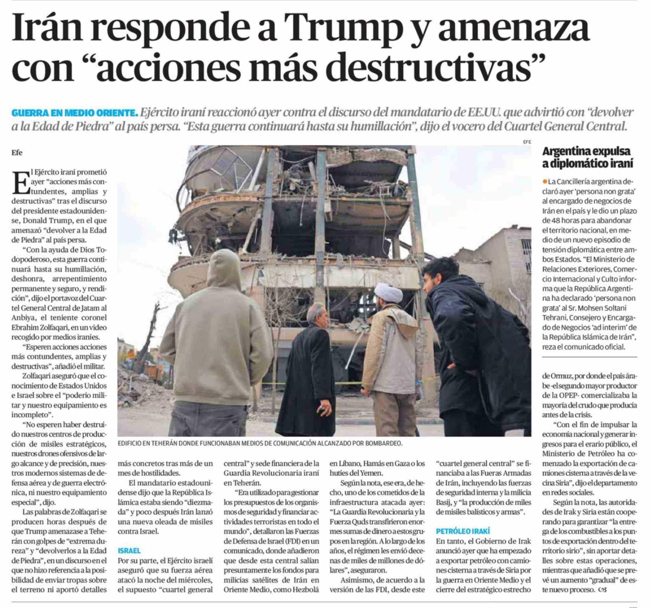 Iran responde a Trump y amenaza con "acciones más destructivas"