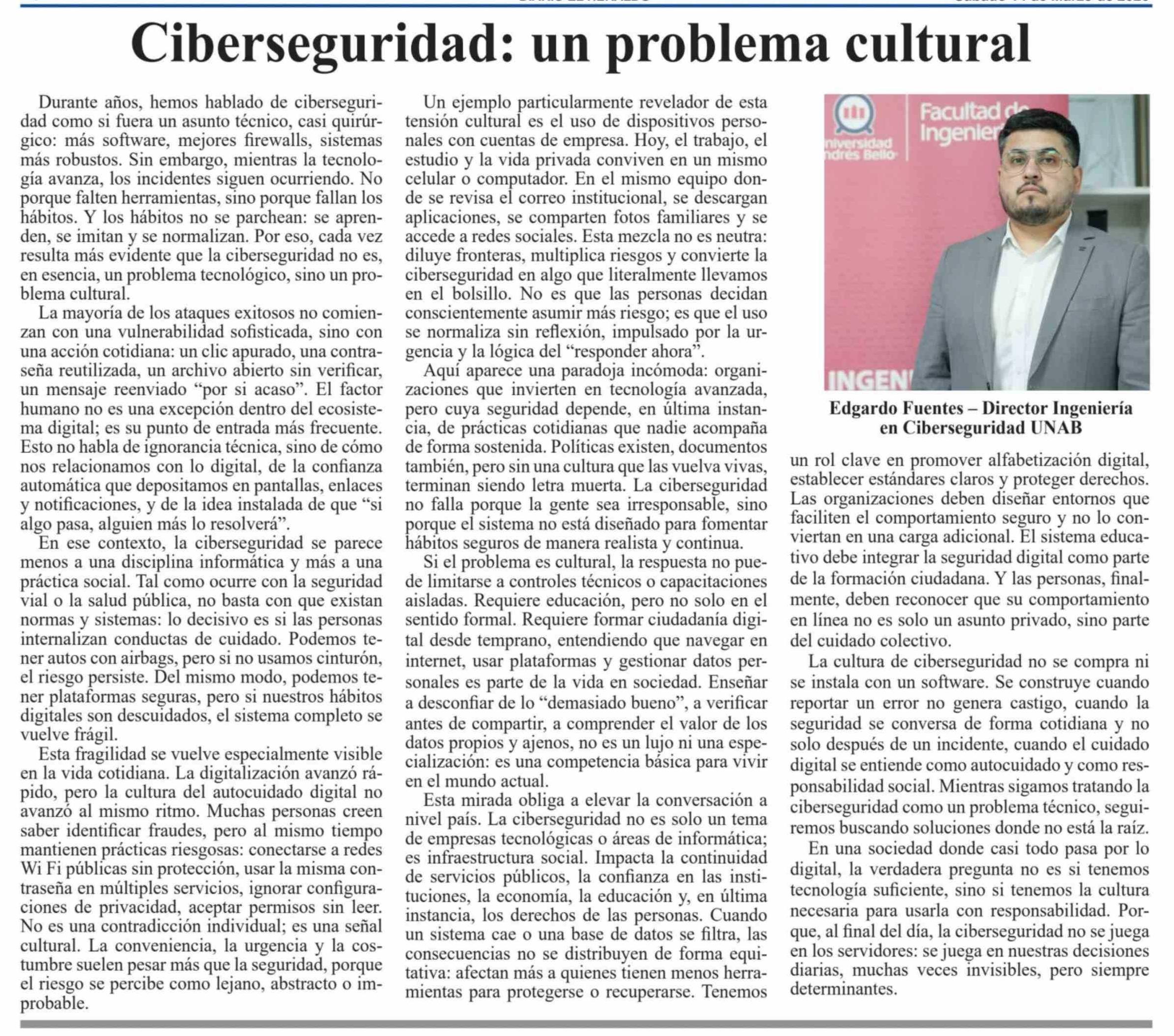 Columnas de Opinión: Ciberseguridad: un problema cultural