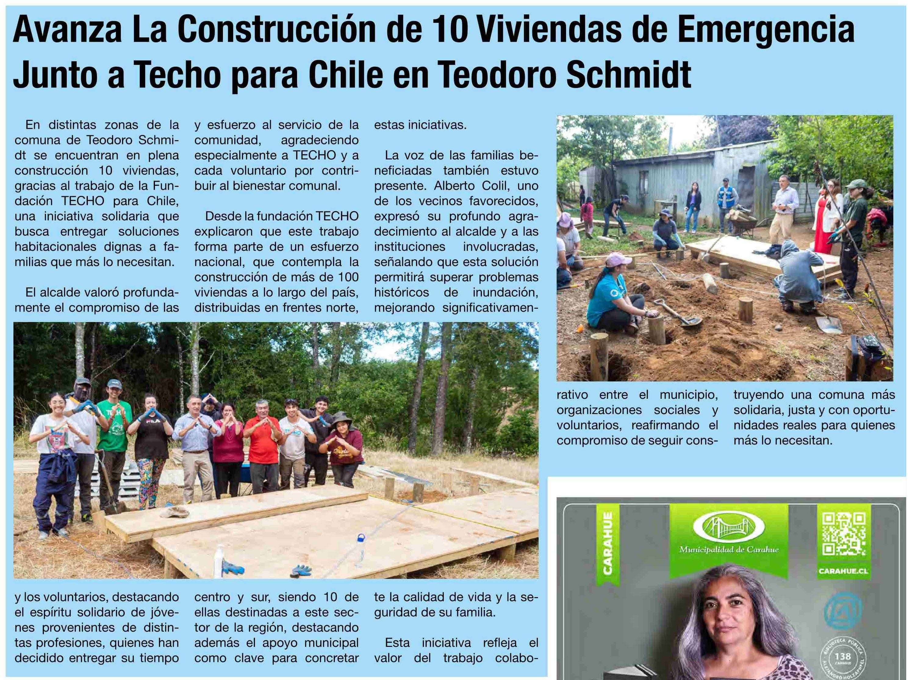 Avanza La Construcción de 10 Viviendas de Emergencia Junto a Techo para Chile en Teodoro Schmidt