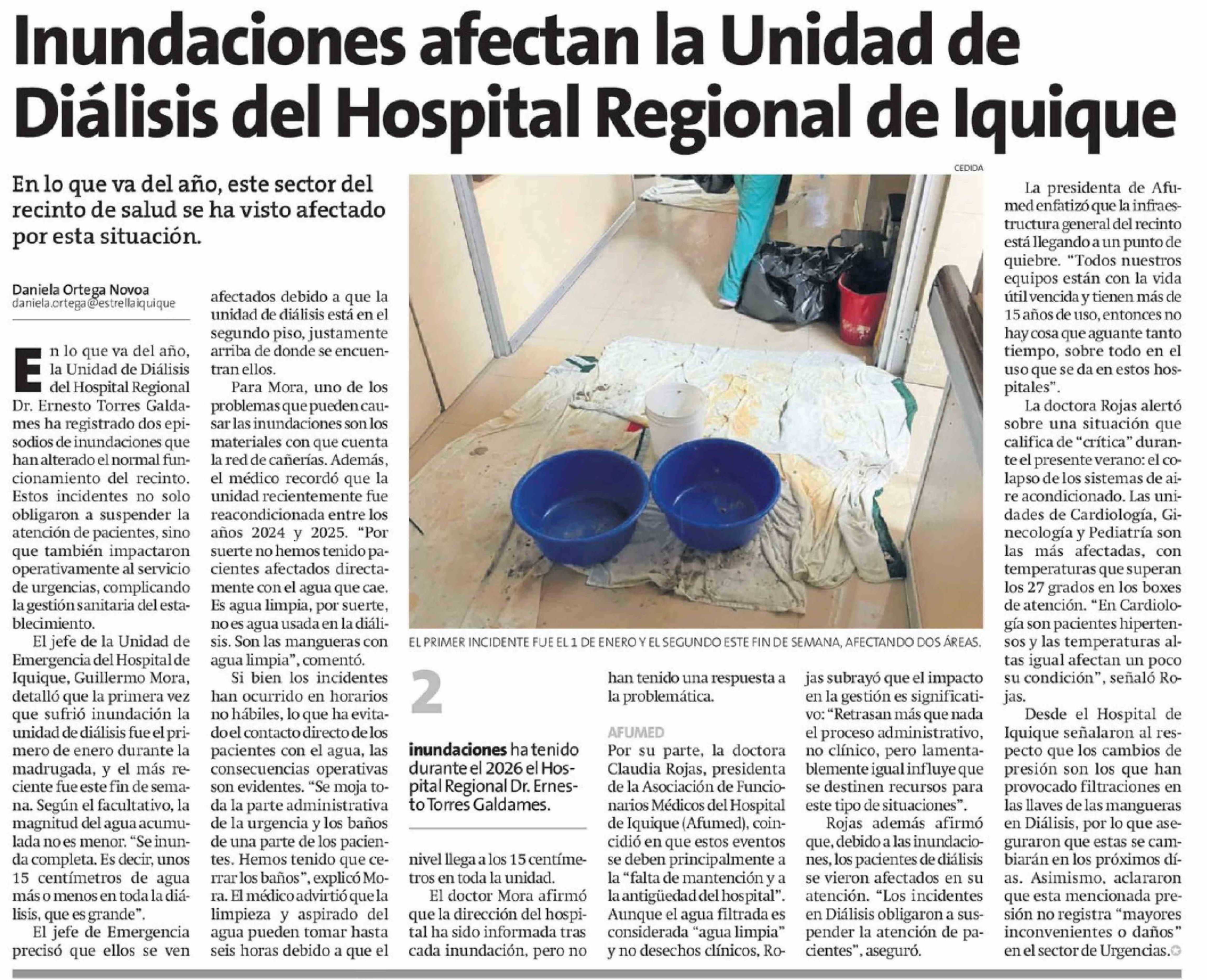 Inundaciones afectan la Unidad de Diálisis del Hospital Regional de Iquique