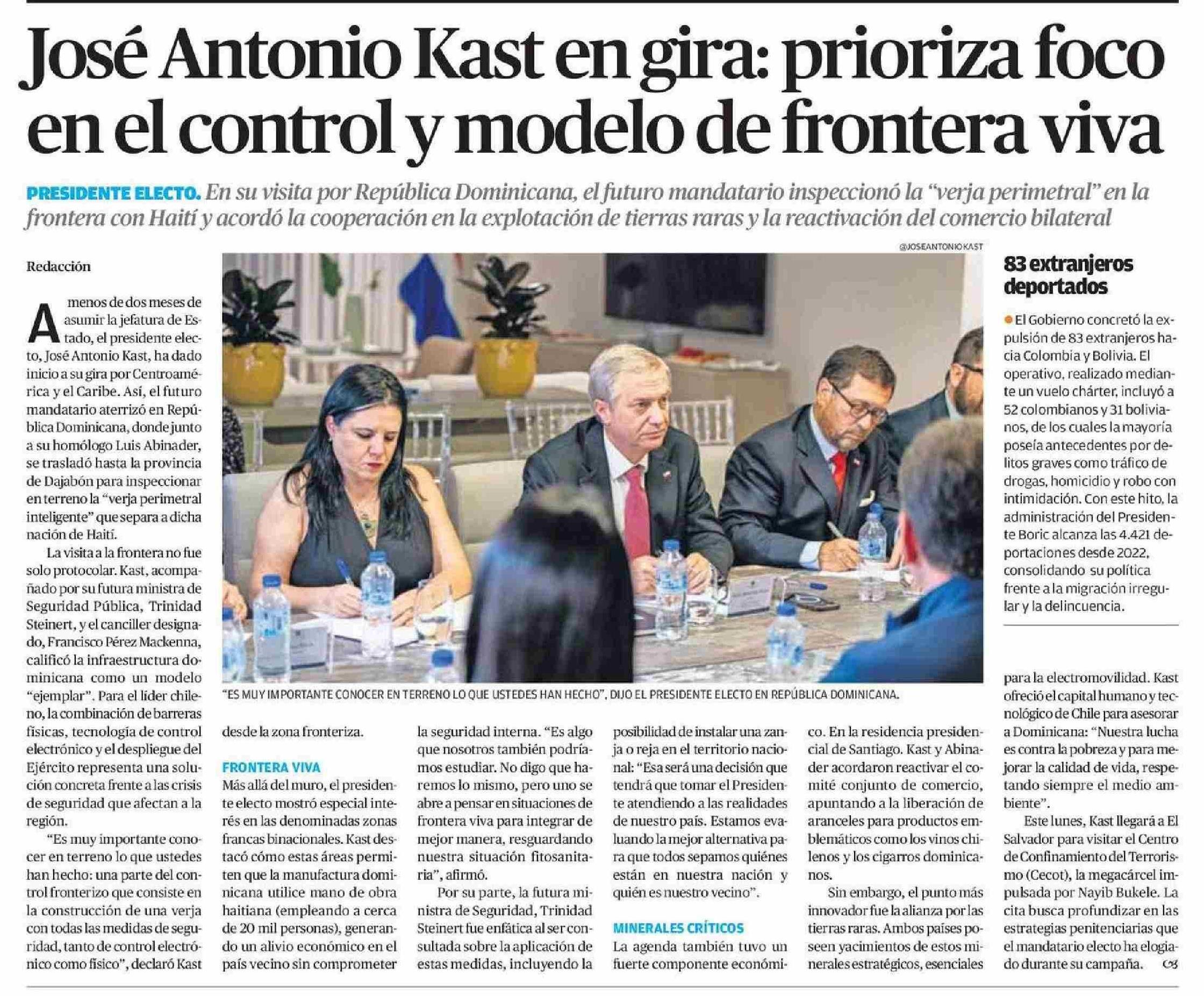 José Antonio Kast en gira: prioriza foco en el control y modelo de frontera viva