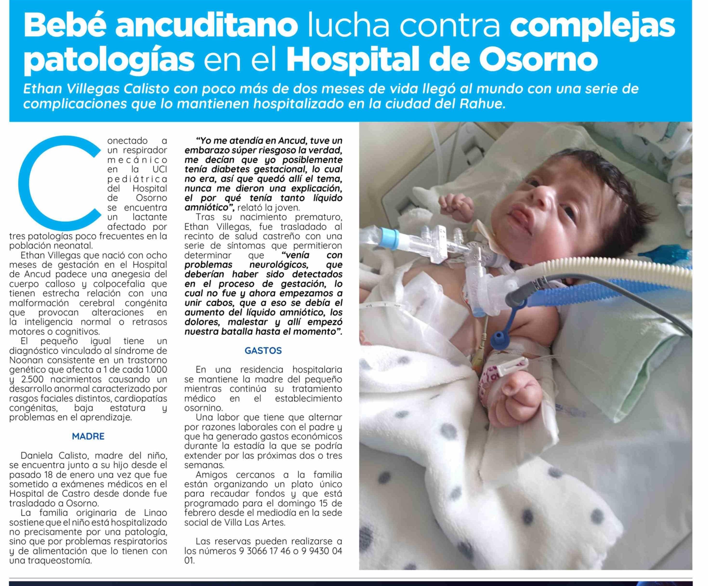 Bebé ancuditano lucha contra complejas patologías en el Hospital de Osorno