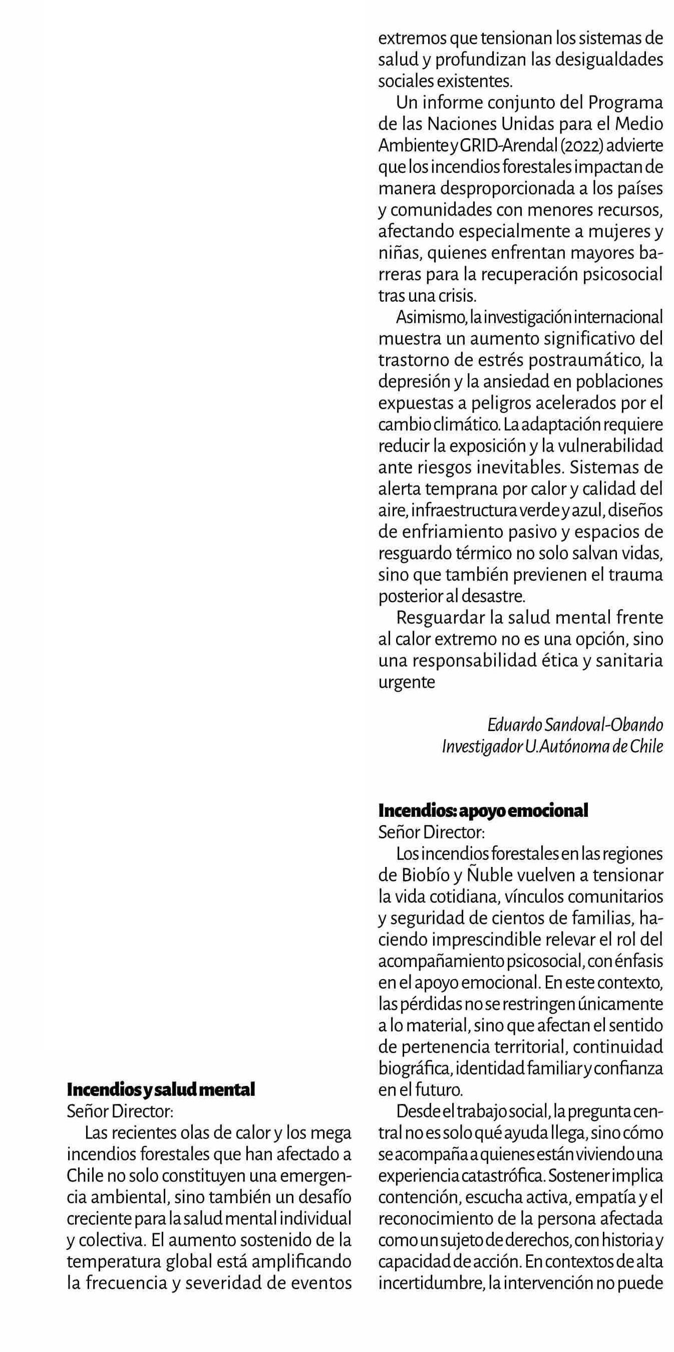 Título: CARTAS: Incendios y salud mental