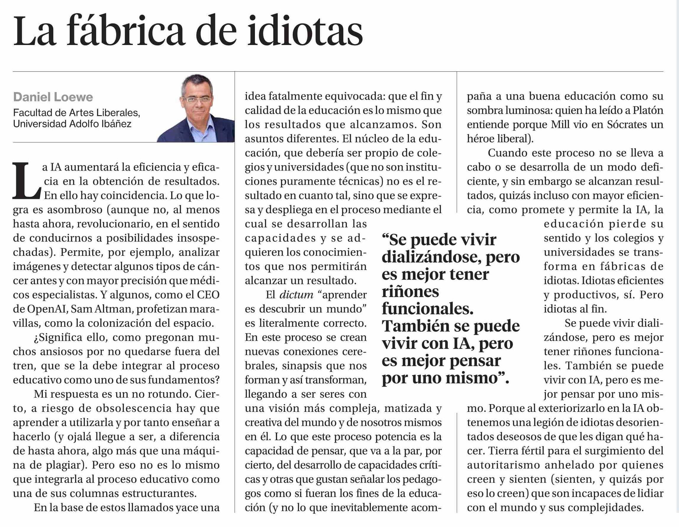 Columnas de Opinión: La fábrica de idiotas