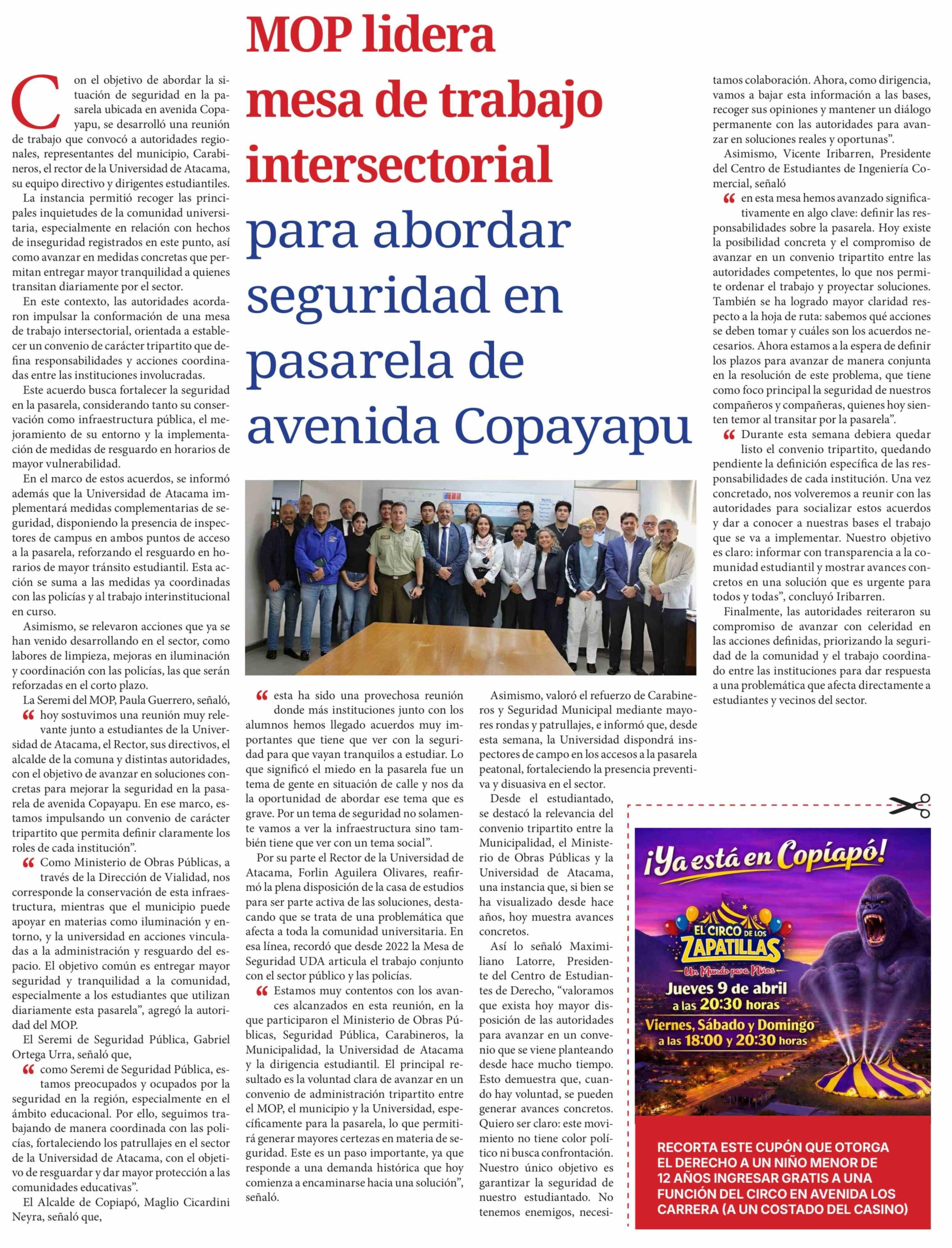 MOP lidera mesa de trabajo intersectorial para abordar seguridad en pasarela de avenida Copayapu