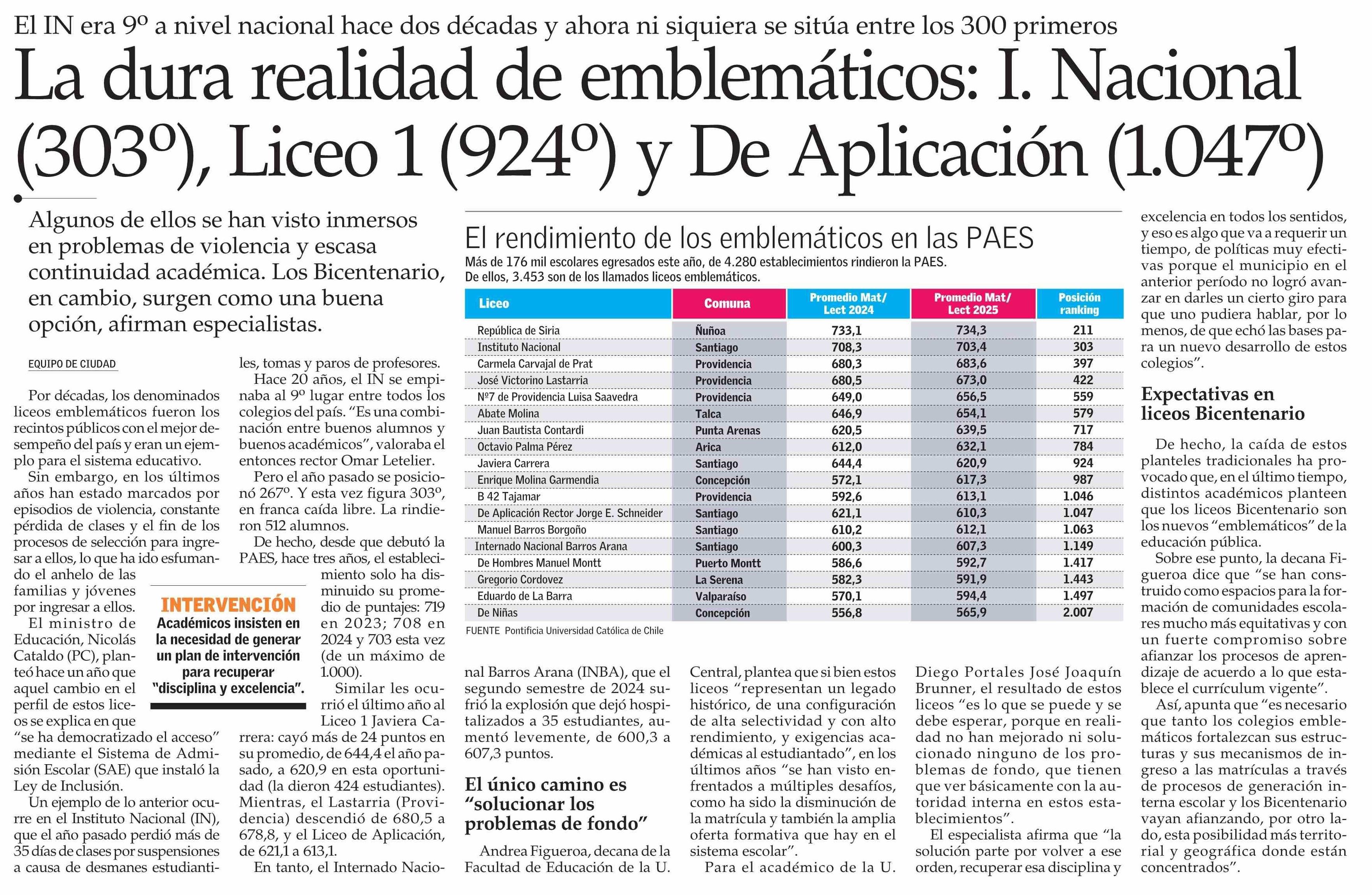 La dura realidad de emblemáticos: I. Nacional (303º), Liceo 1 (924º) y De Aplicación (1.047º)