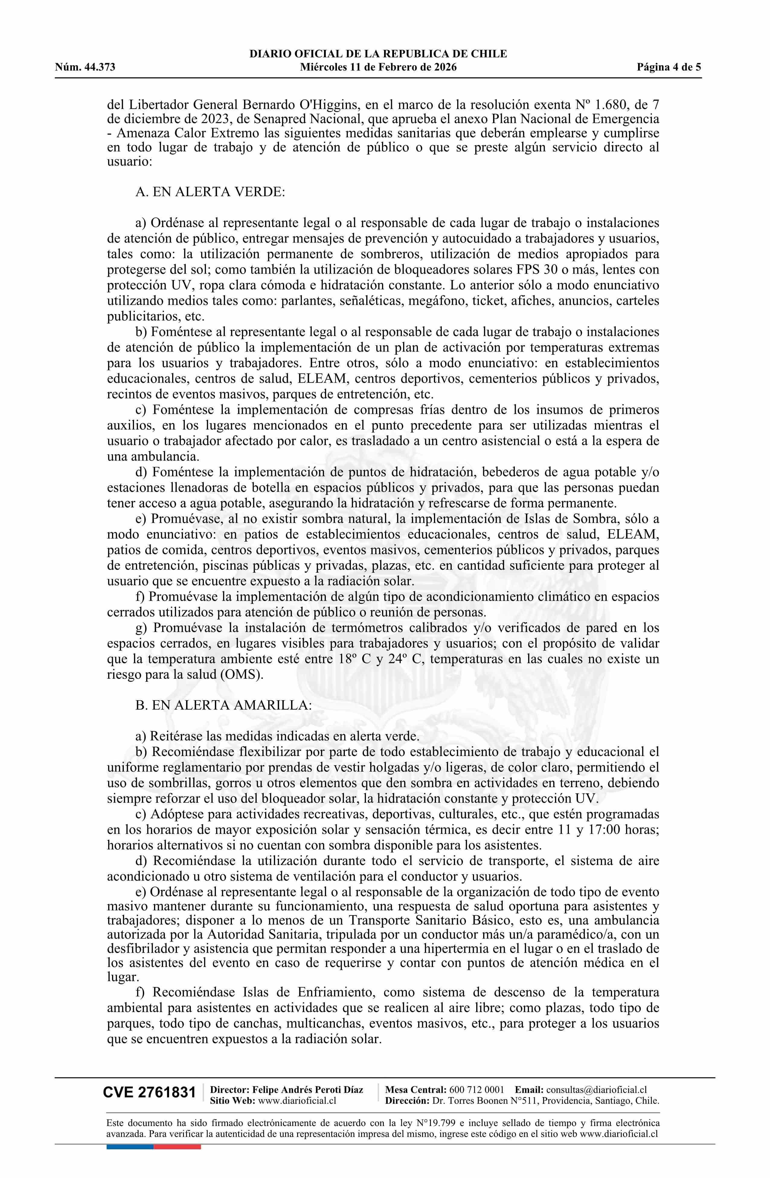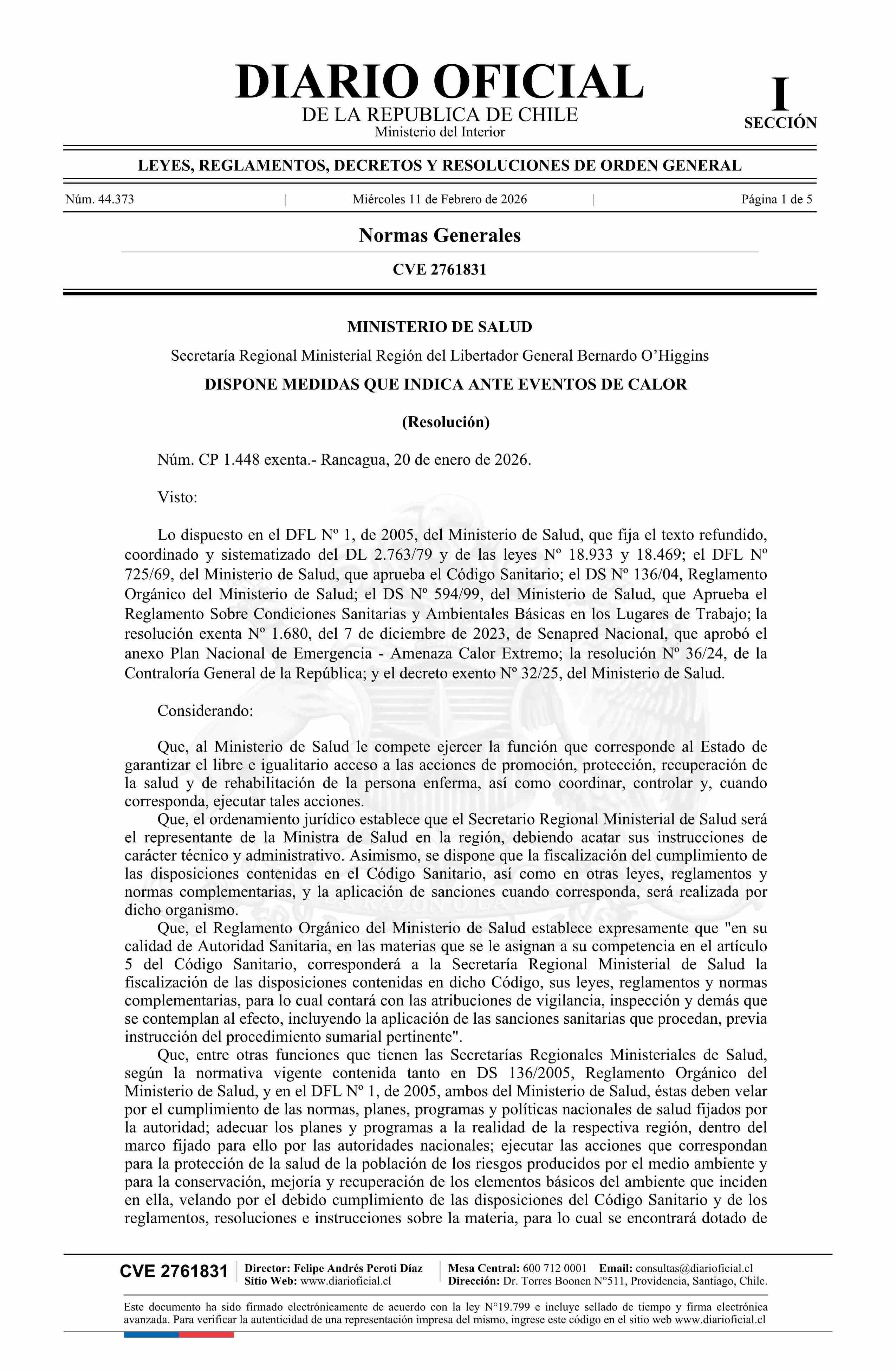 Título: Resolución exenta número CP 1.448, de 2026.- Dispone medidas que indica ante eventos de calor