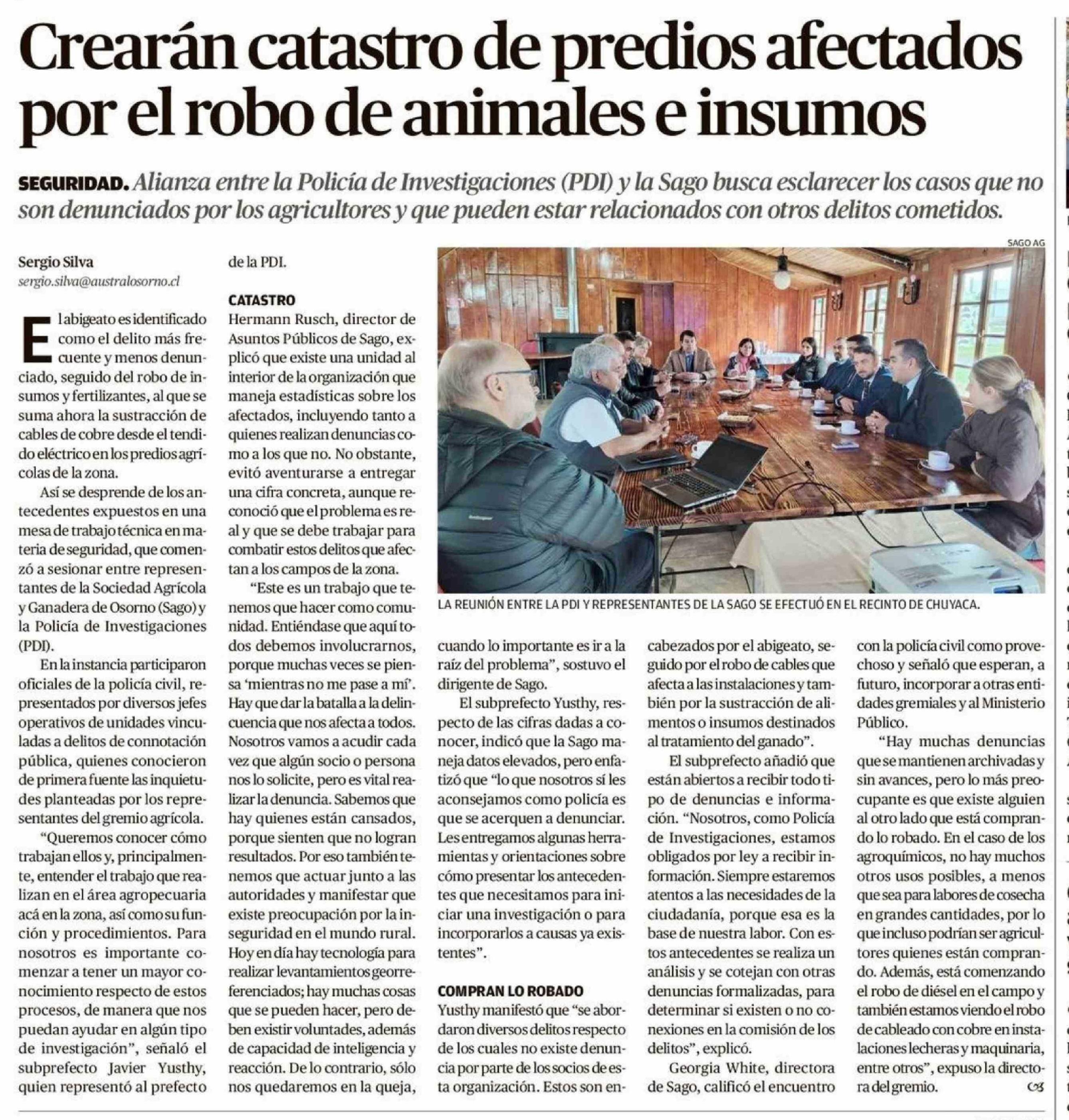 Título: Crearán catastro de predios afectados por el robo de animales e insumos