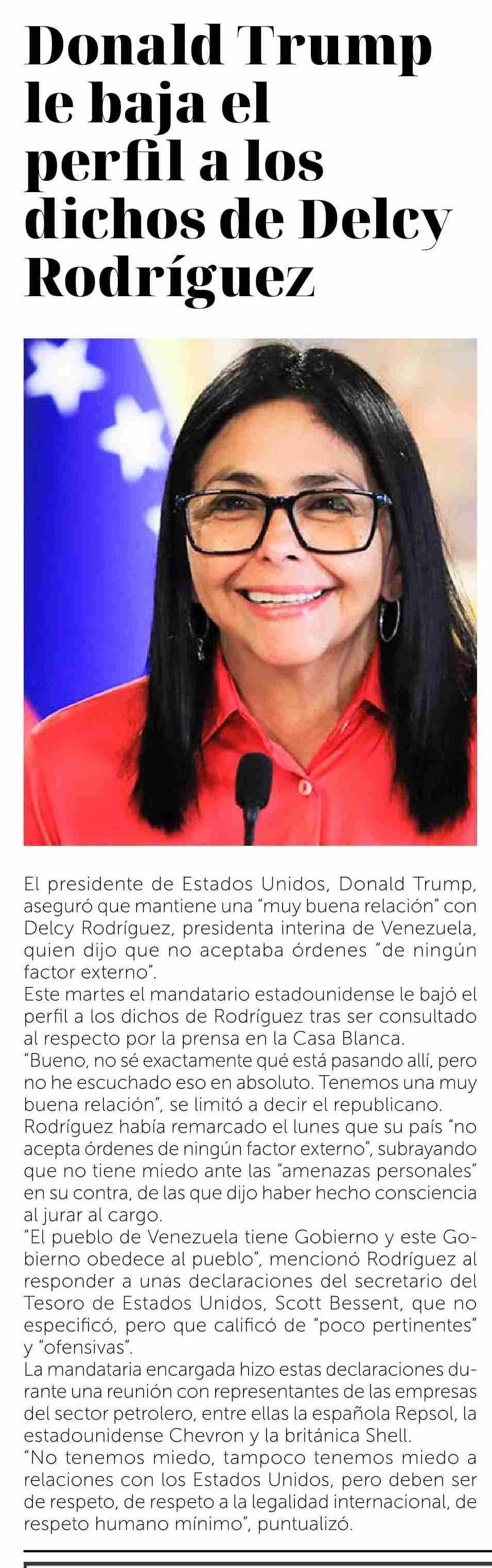 Donald Trump le baja el perfil a los dichos de Delcy Rodríguez