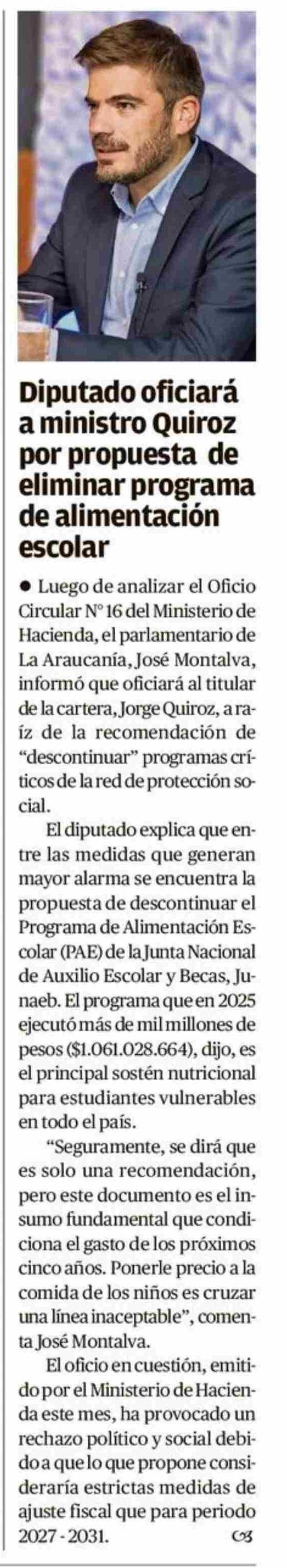 Diputado oficiará aministro Quiroz por propuesta de eliminar programa de alimentación escolar