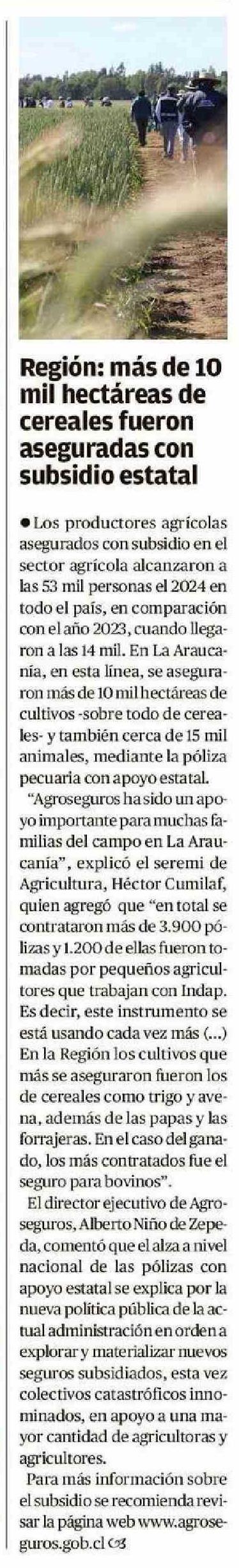 Región: más de 10 mil hectáreas de cereales fueron aseguradas con subsidio estatal