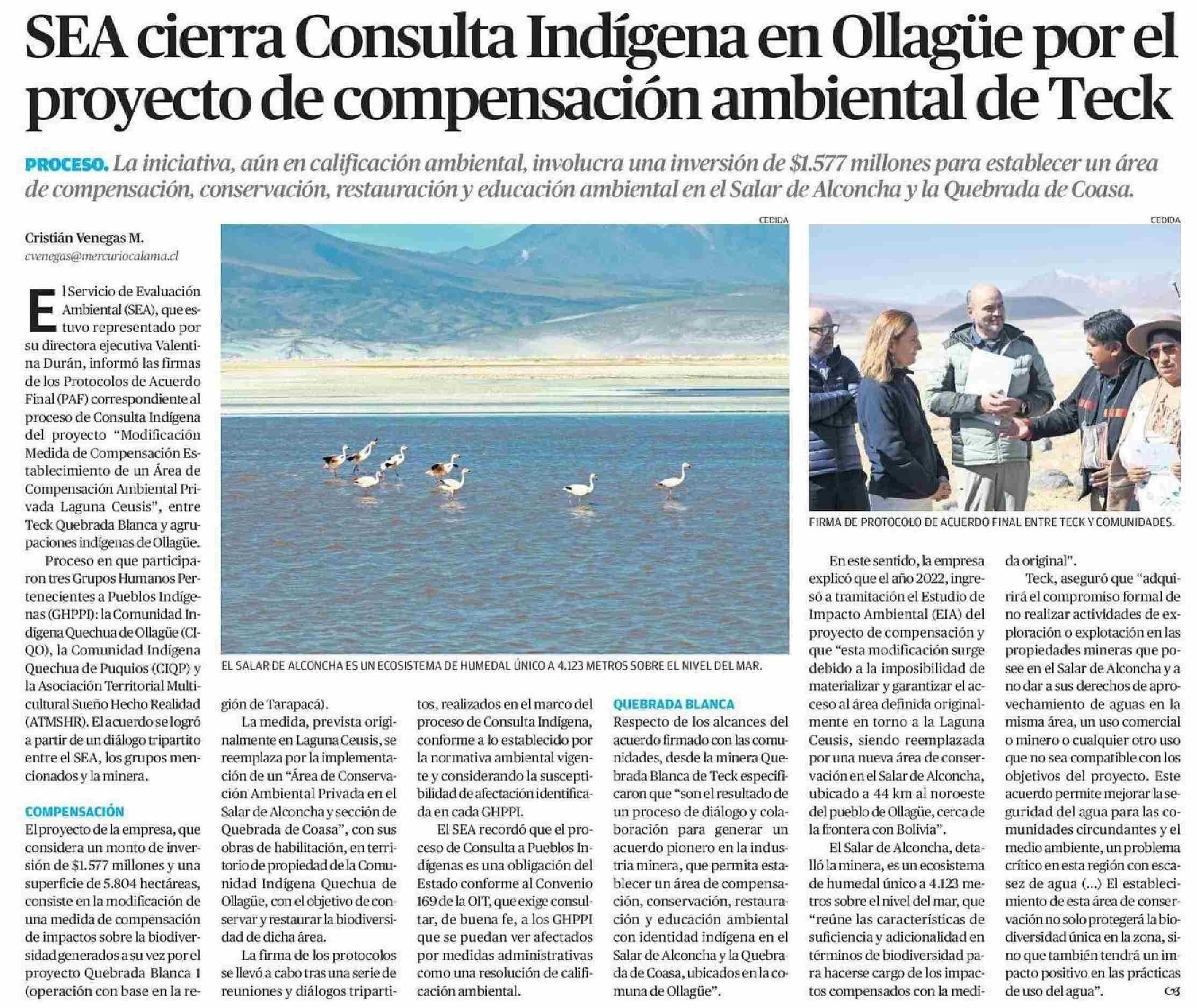 SEA cierra Consulta Indígena en Ollagite por el proyecto de compensación ambiental de Teck