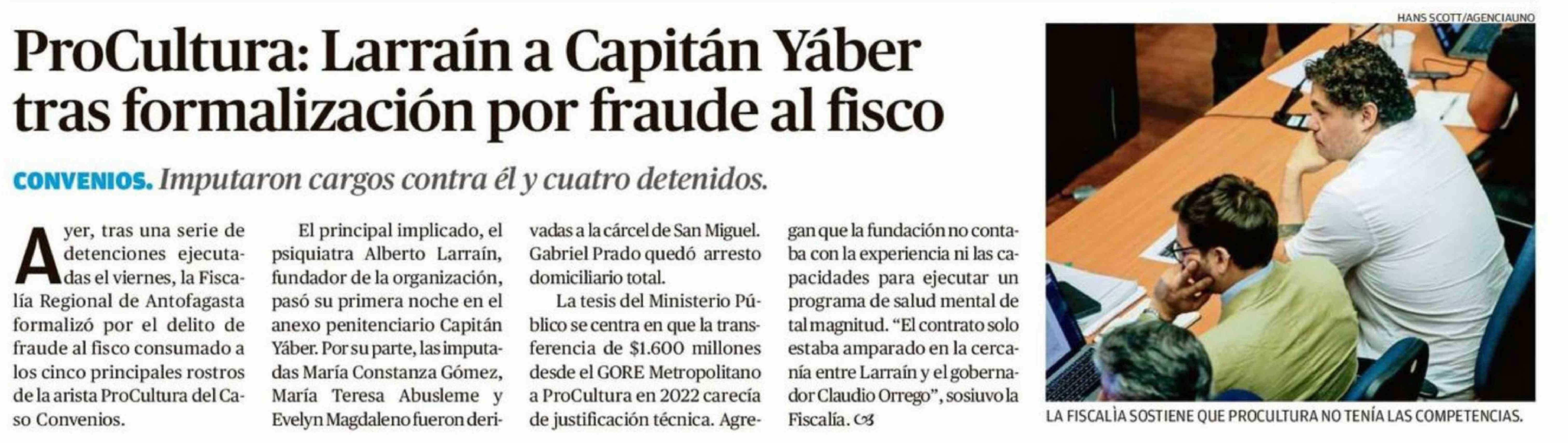 ProCultura: Larraín a Capitán Yaber tras formalización por fraude al fisco