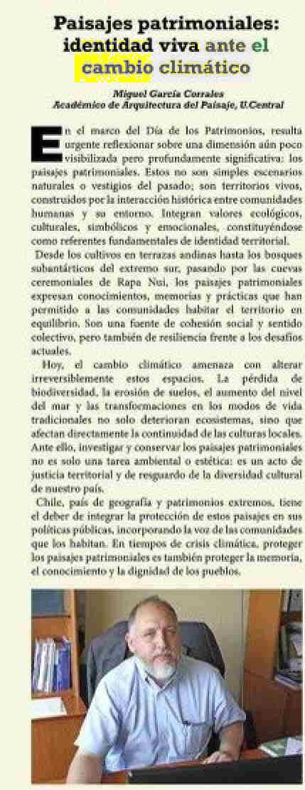 Título: COLUMNAS DE OPINIÓN: Paisajes patrimoniales: identidad viva ante el cambio climático