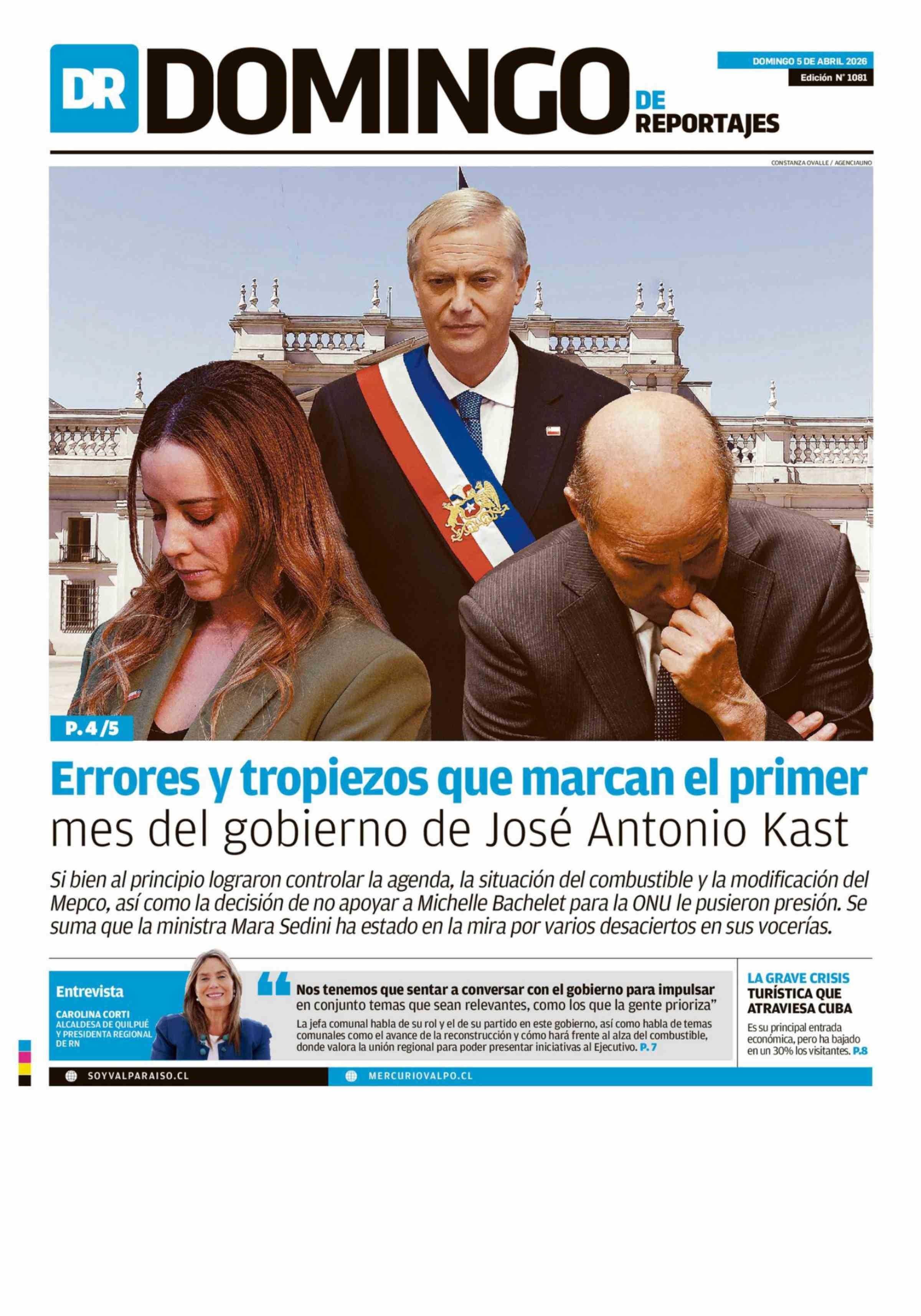 PORTADA EL MERCURIO DE VALPARAÍSO (DOMINGO) CHILE